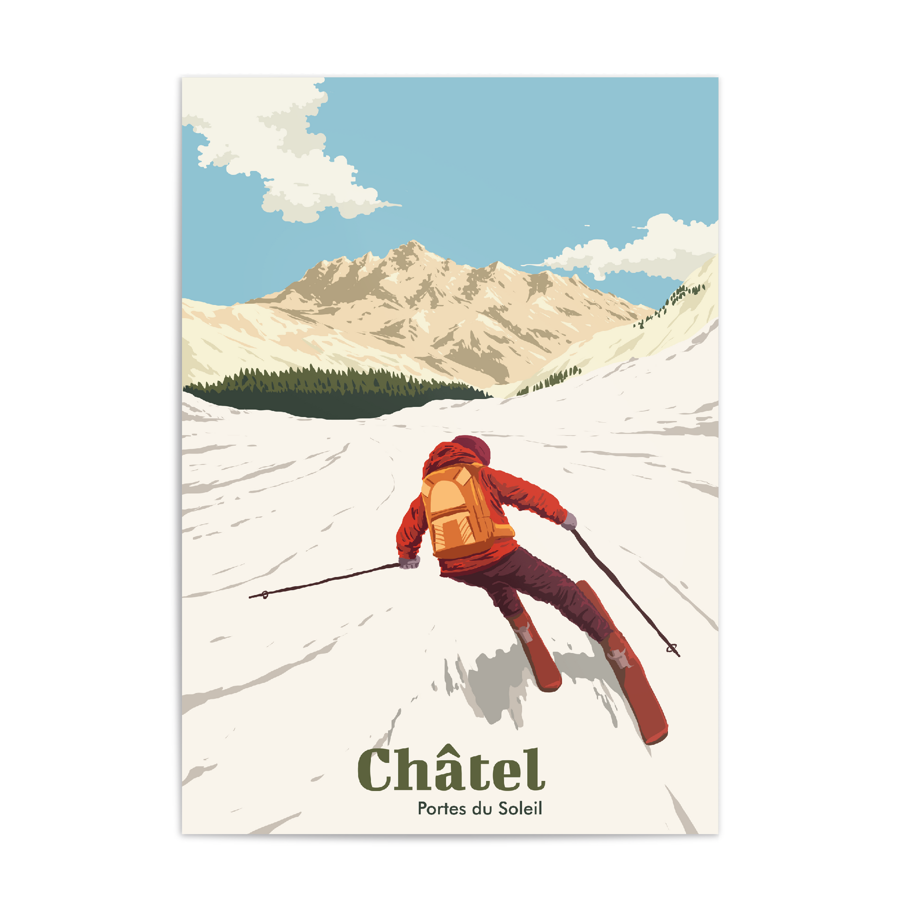 This is an original travel poster featuring the French ski resort of Chatel in the Portes du Soleil area of the French Alps.