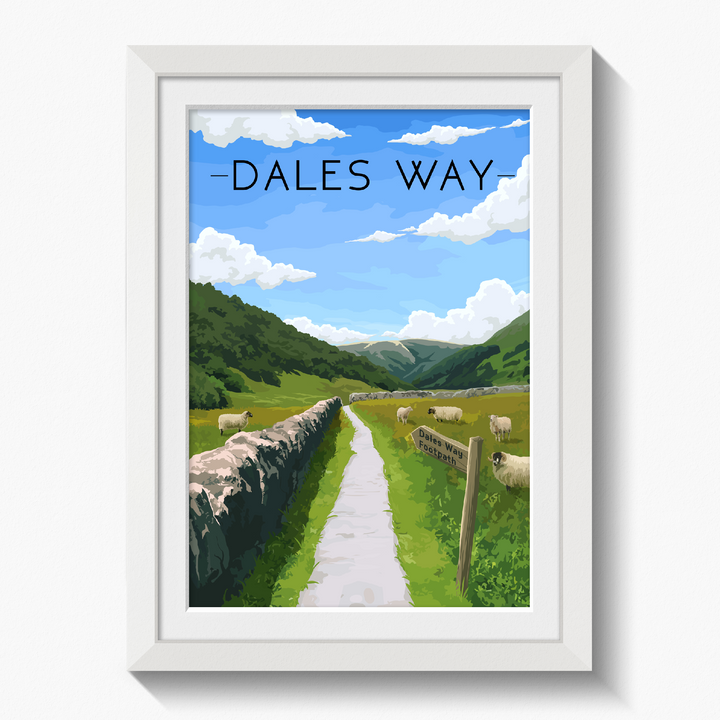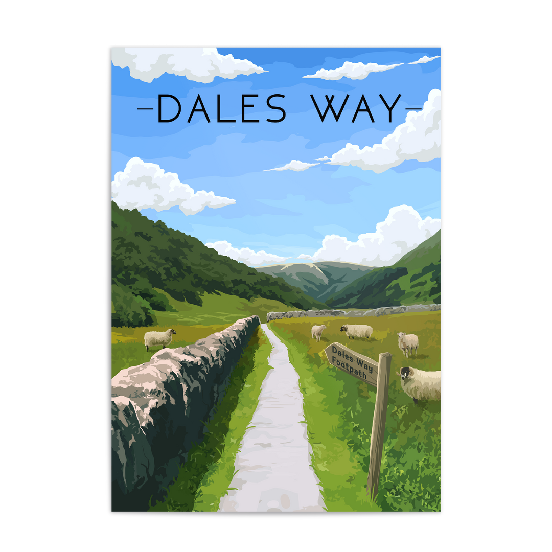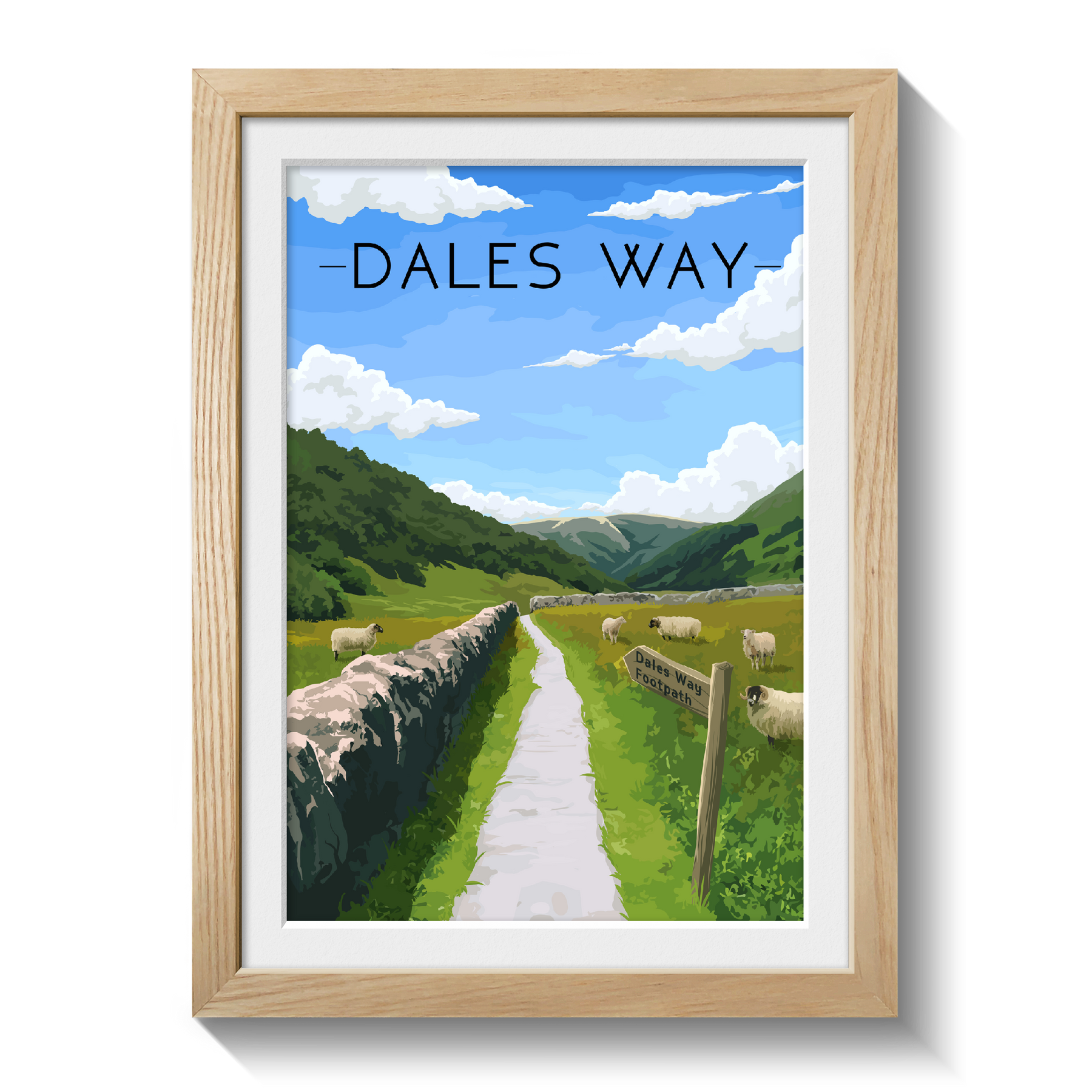 This original print features the famous Dales Way hiking trail that runs 80 miles from Ilkley to Bowness on Windermere, passing through two National Parks, the Yorkshire Dales and the Lake District.