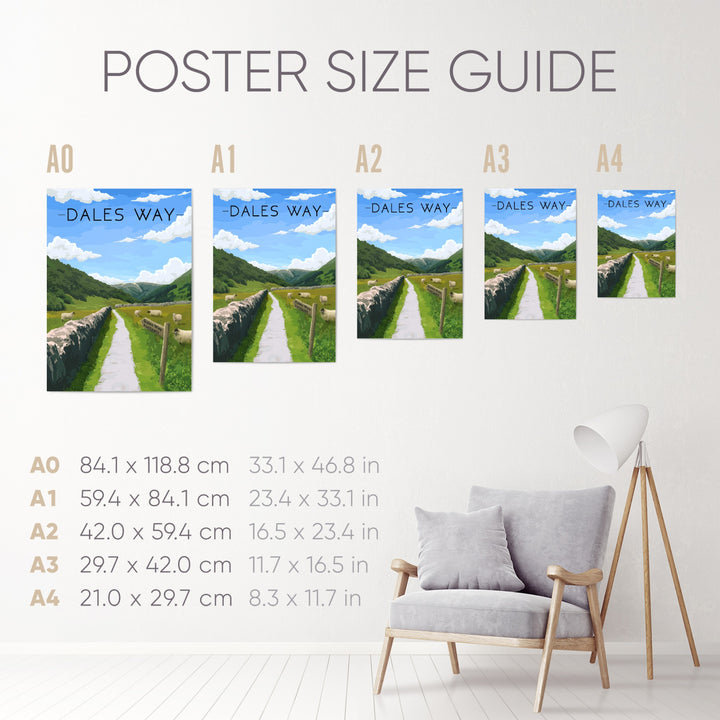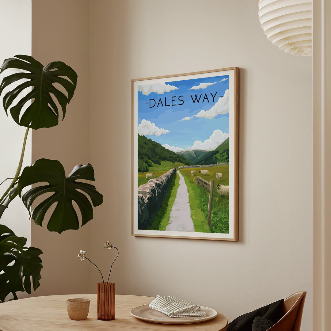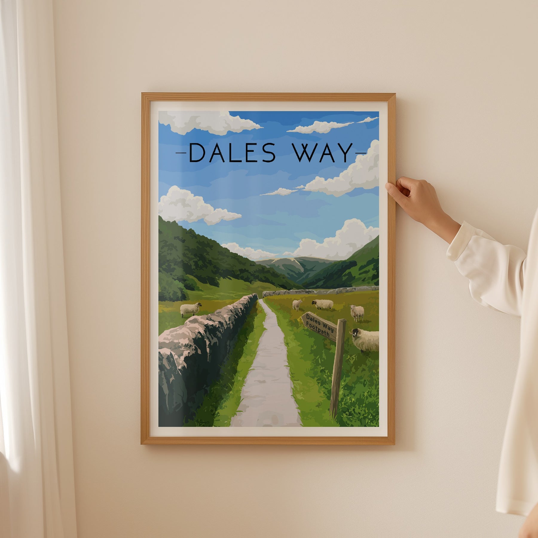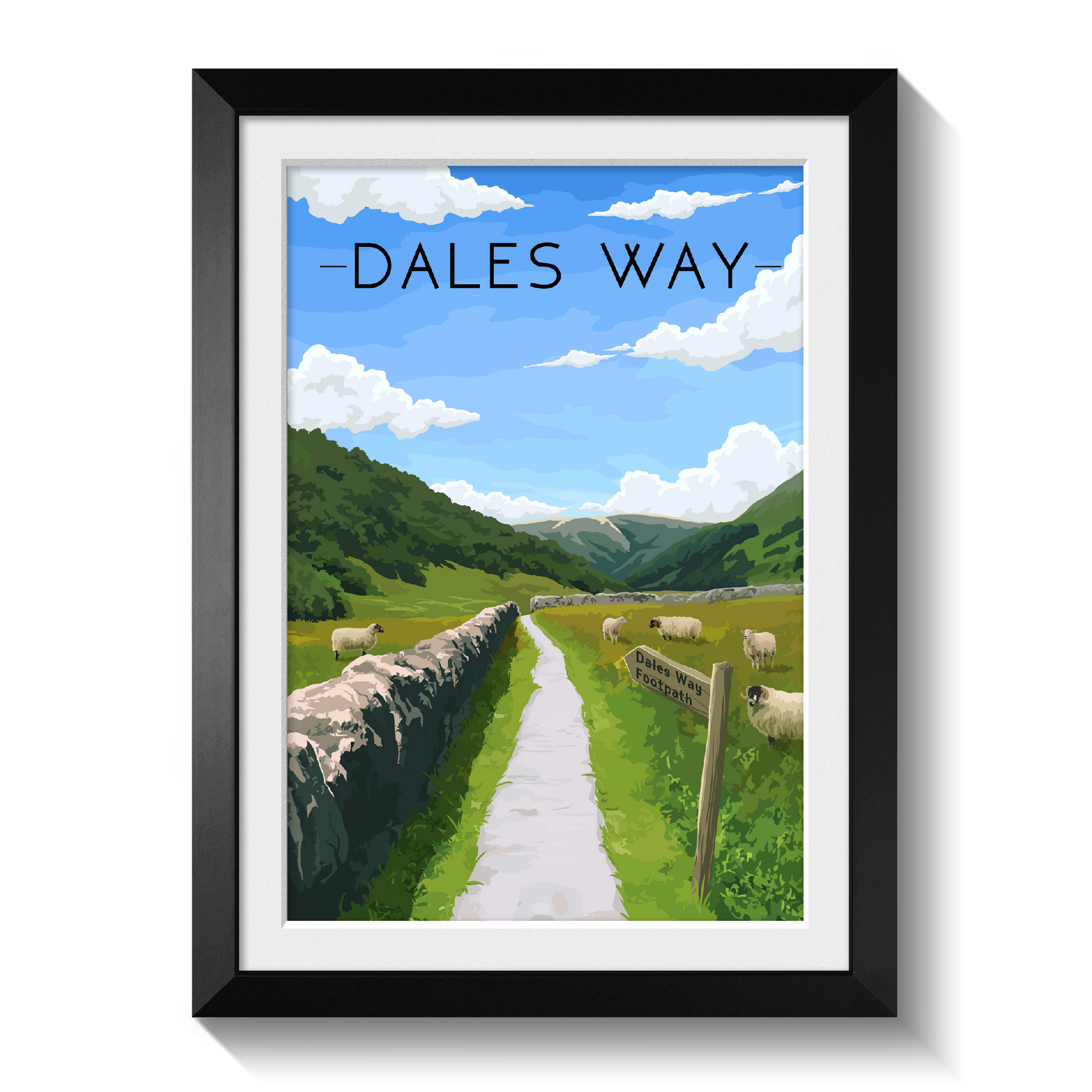 This original print features the famous Dales Way hiking trail that runs 80 miles from Ilkley to Bowness on Windermere, passing through two National Parks, the Yorkshire Dales and the Lake District.