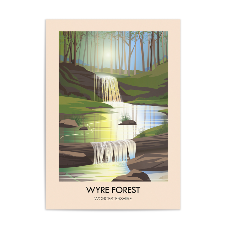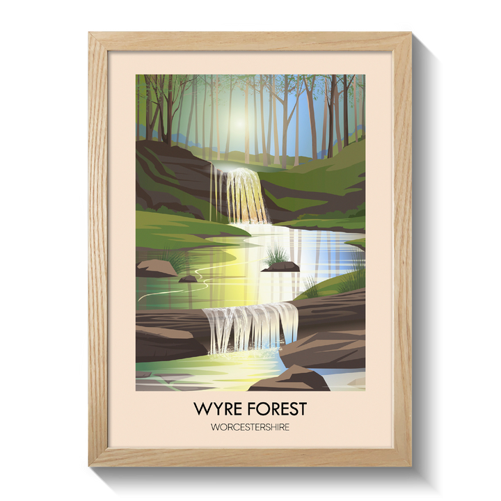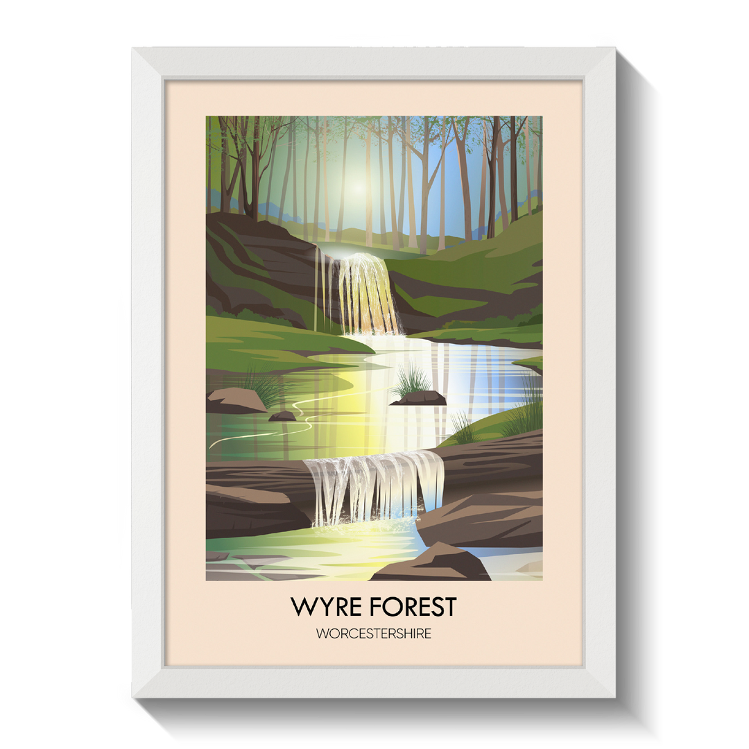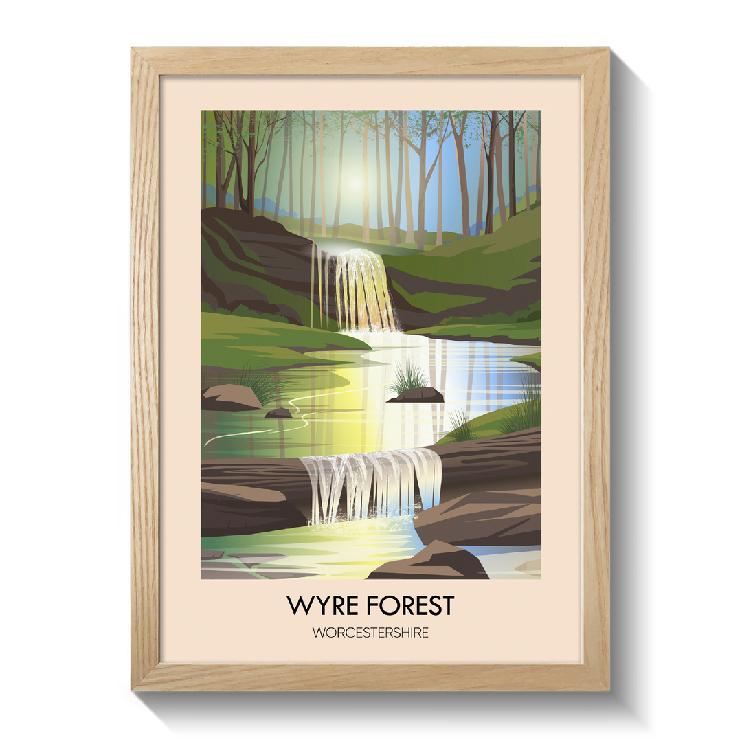 An original travel poster featuring Wyre Forest, the UK's largest woodland National Nature Reserve. Wyre Forest is located to the west of Birmingham and straddles the counties of Worcestershire and Shropshire.