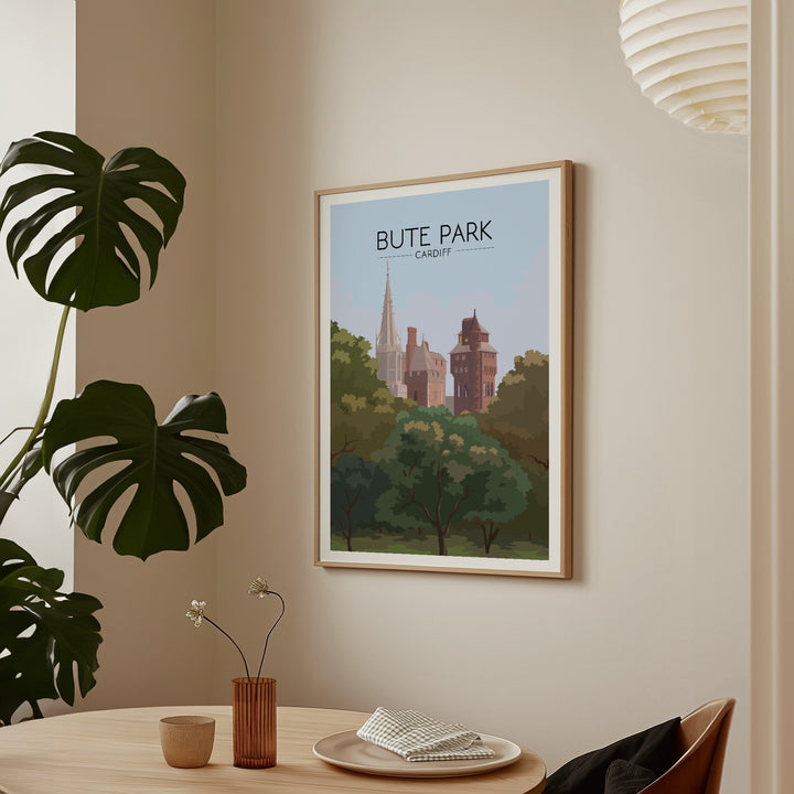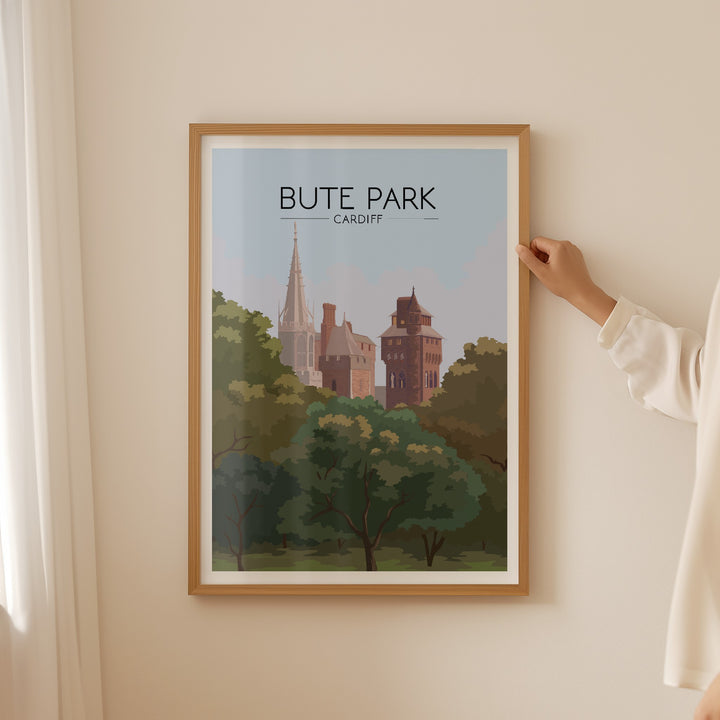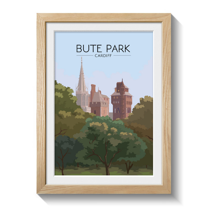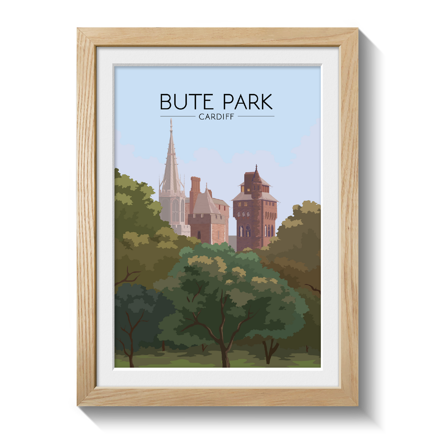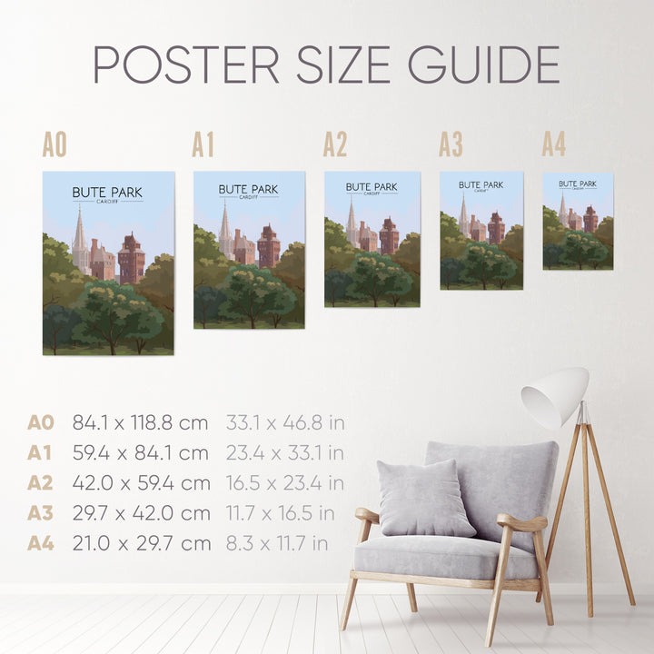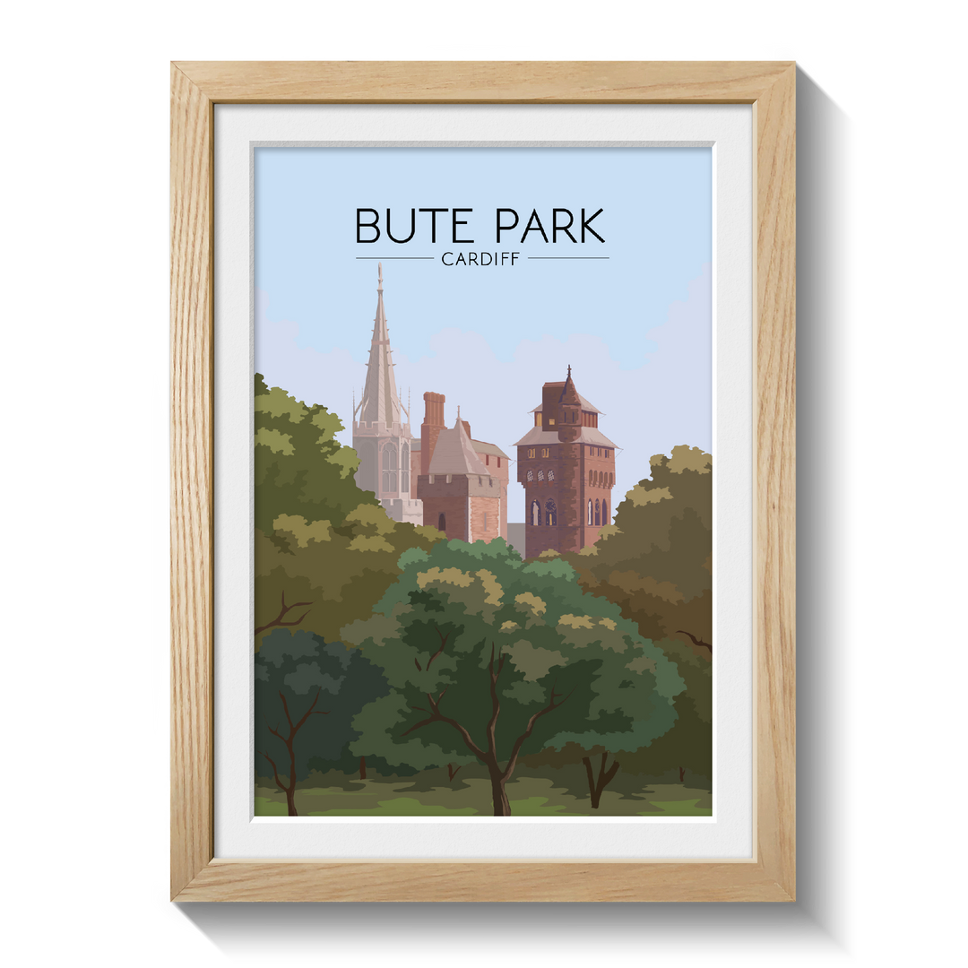 Original travel poster featuring Bute Park and the majestic Cardiff Castle just a short walk from the city’s main high streets. Bute Park is the green heart of the city where you can explore a superb tree collection and a wealth of horticulture and wildlife.