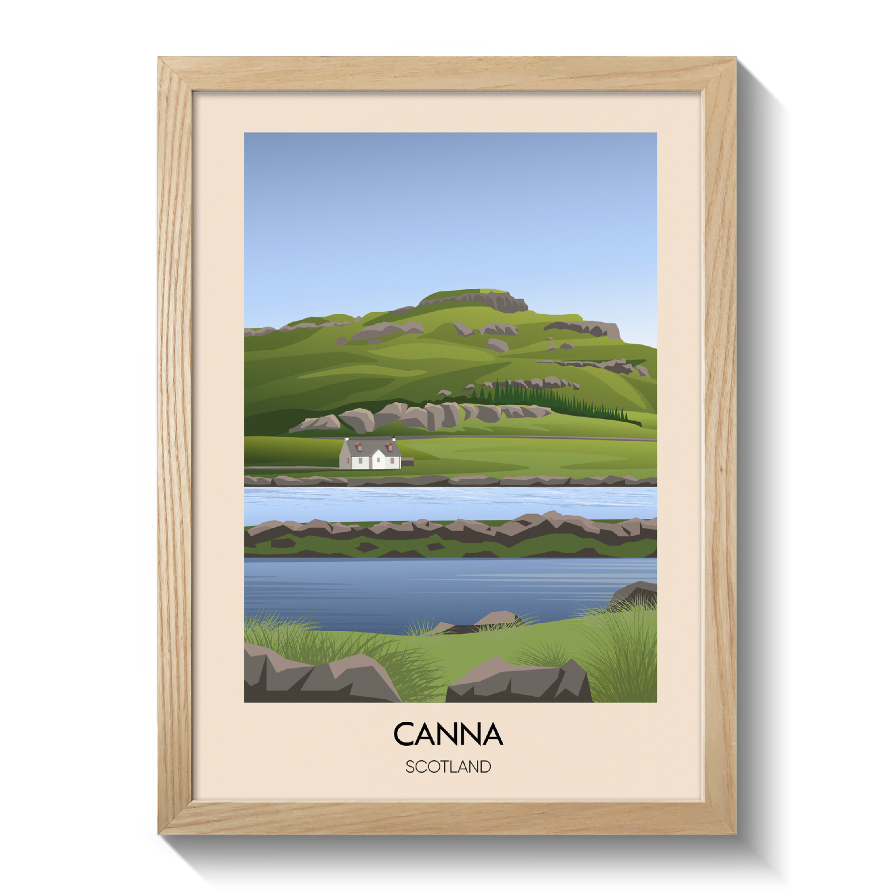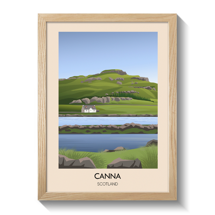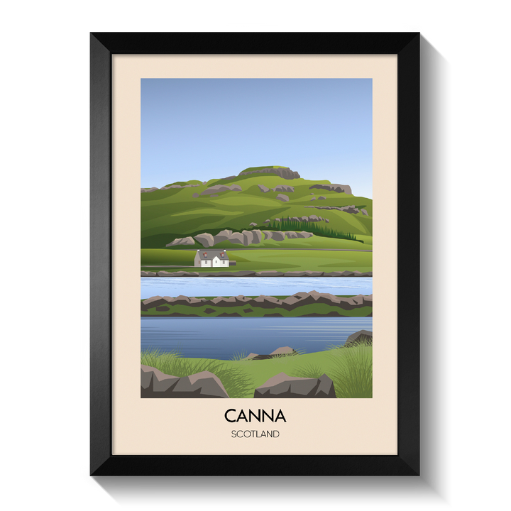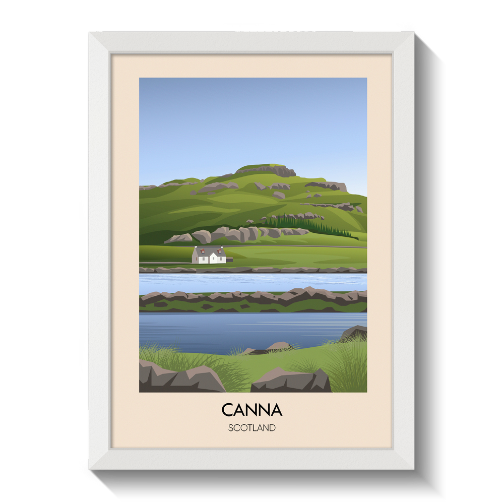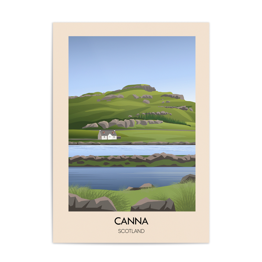 This original print features the tiny island of Canna, the westernmost of the Small Isles off the west coast of Scotland. It's joined by a road to the smaller island of Sanday, and the channel between them dries out at low tide. Wear your hiking boots as there are no cars, and bring your binoculars to spy the wonderful birdlife.