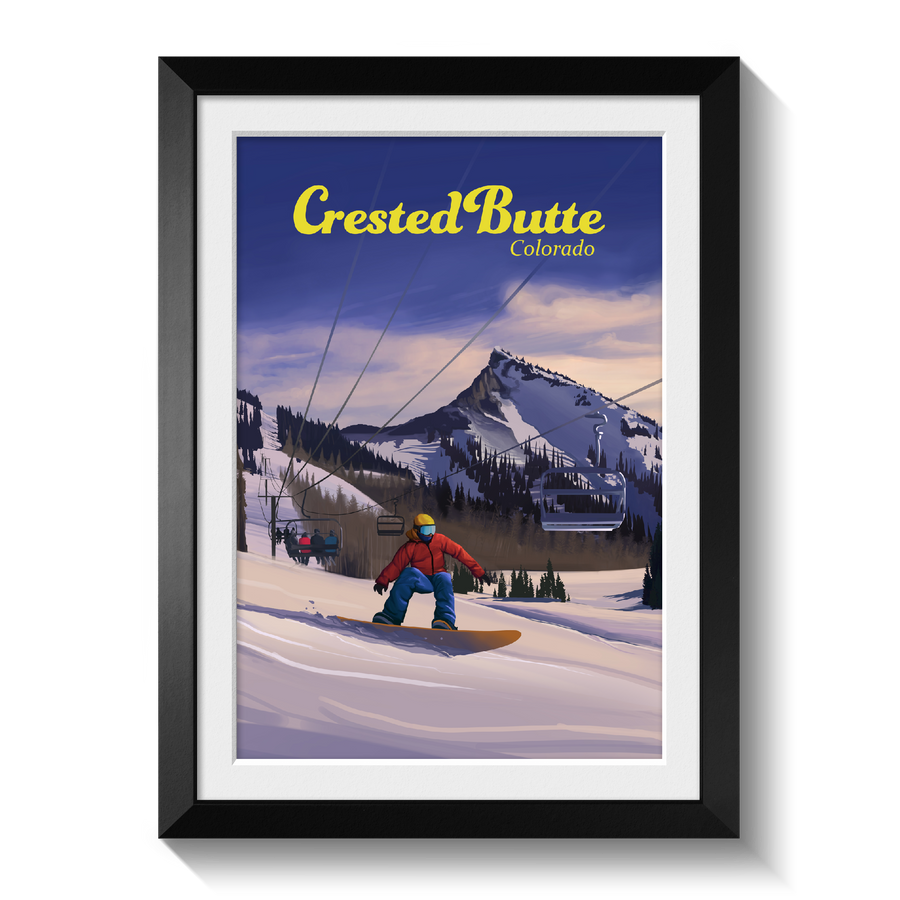 Crested Butte Colorado Snowboarding Travel Poster