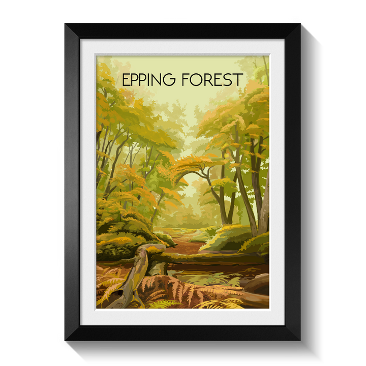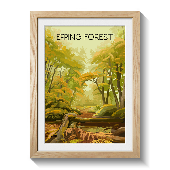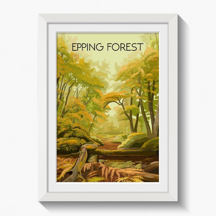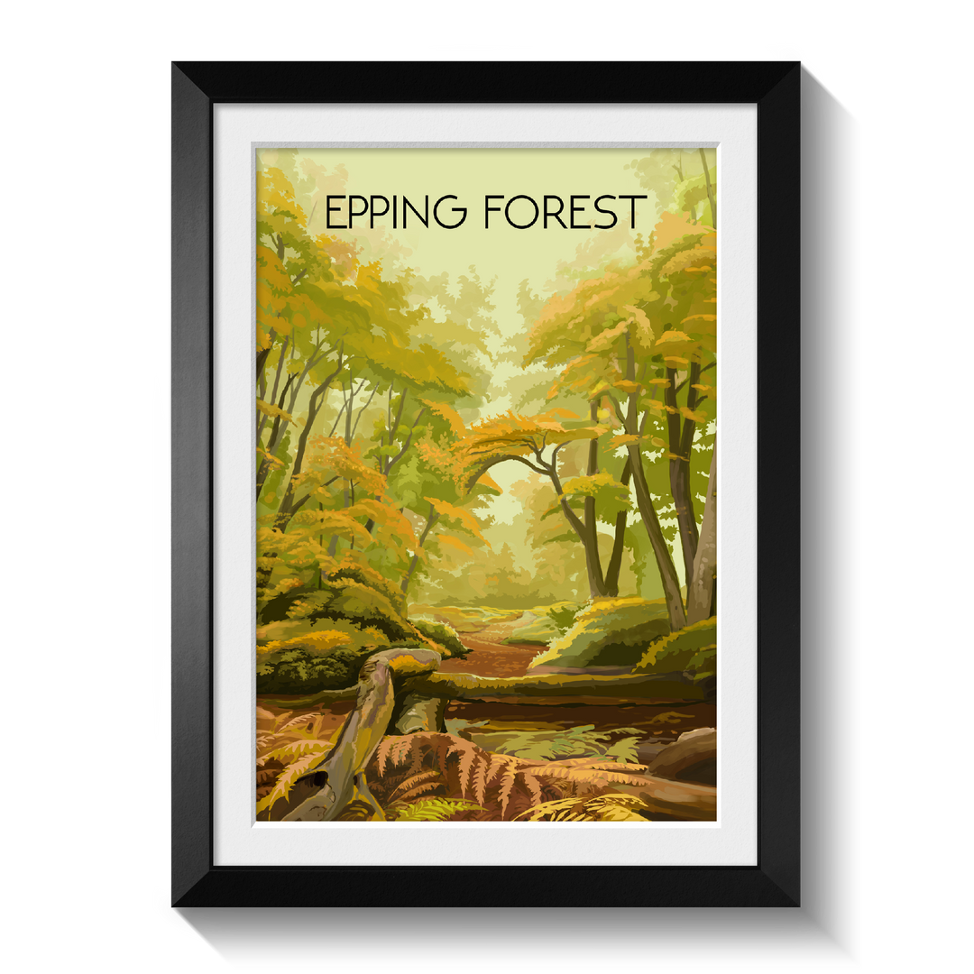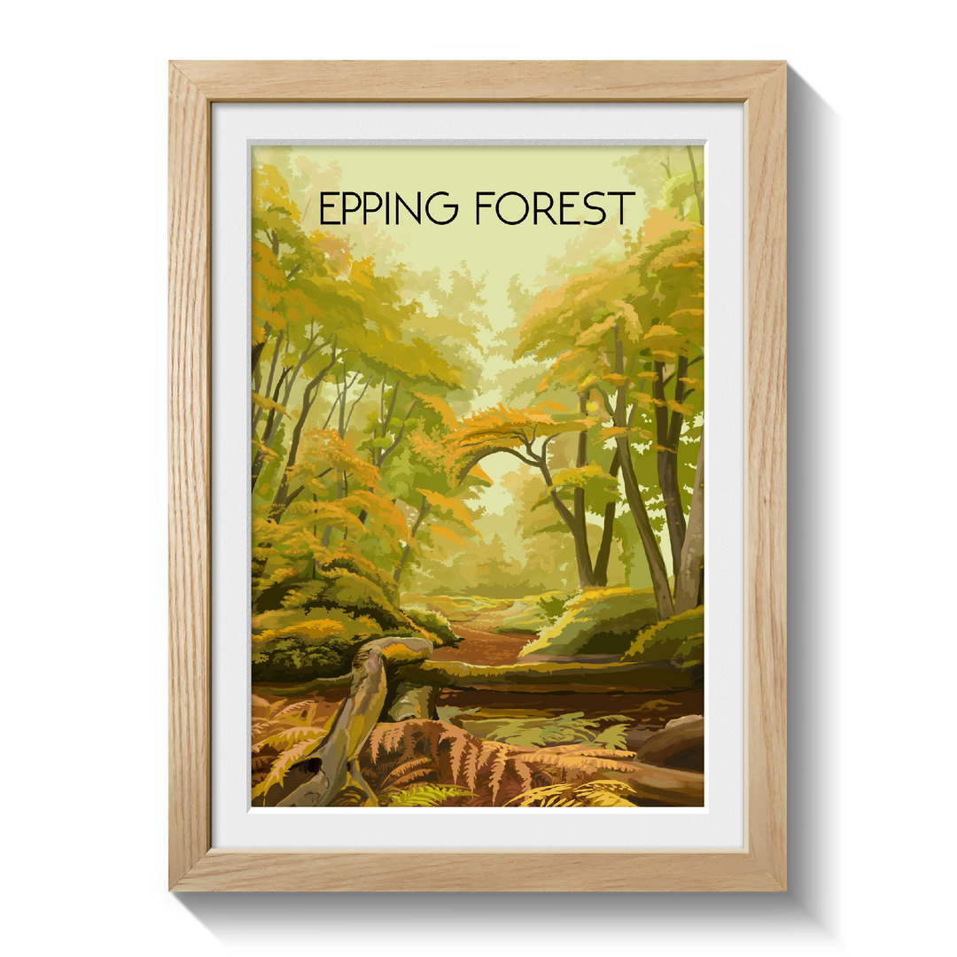 An original travel poster featuring the awesome Epping Forest, which straddles the border between Essex and Greater London.