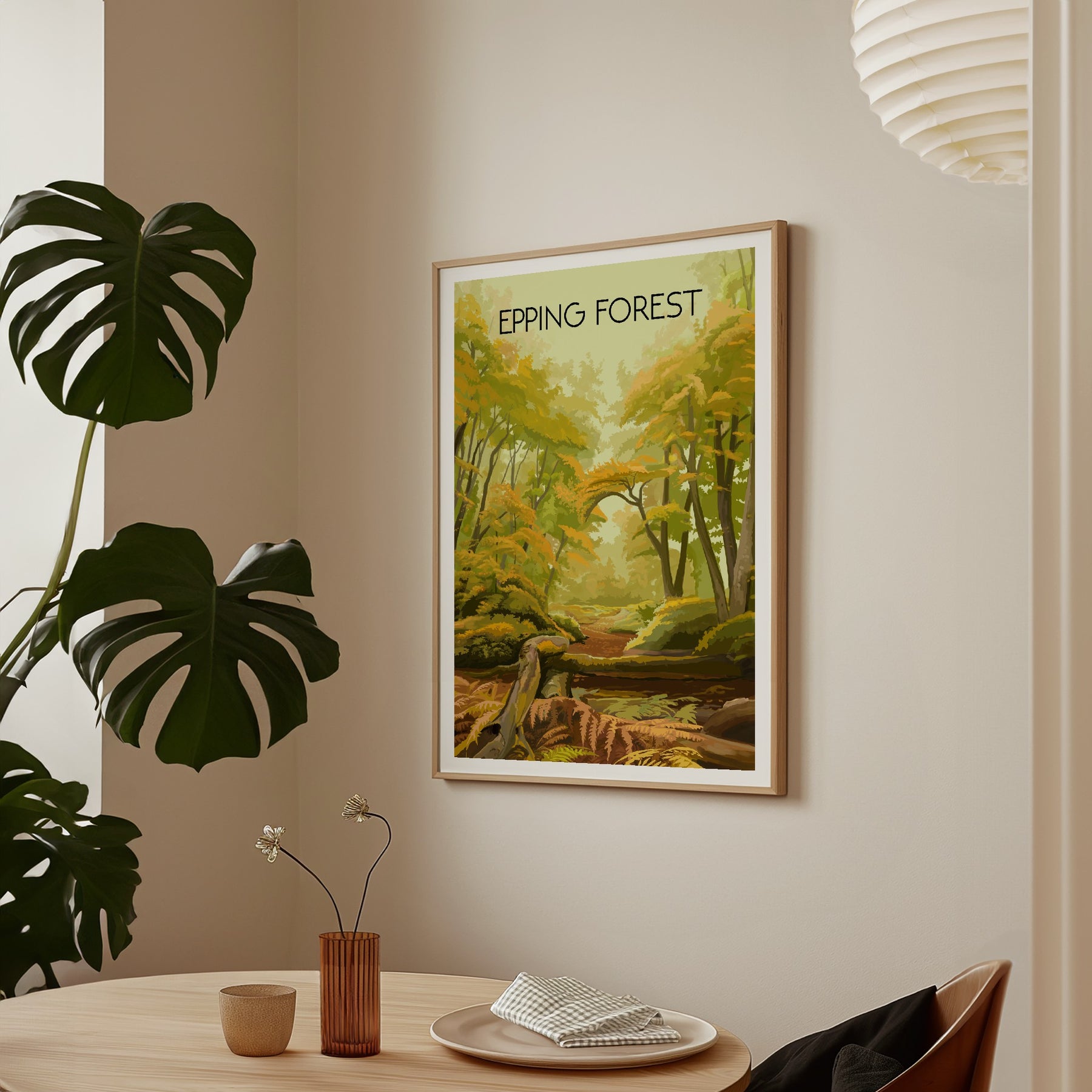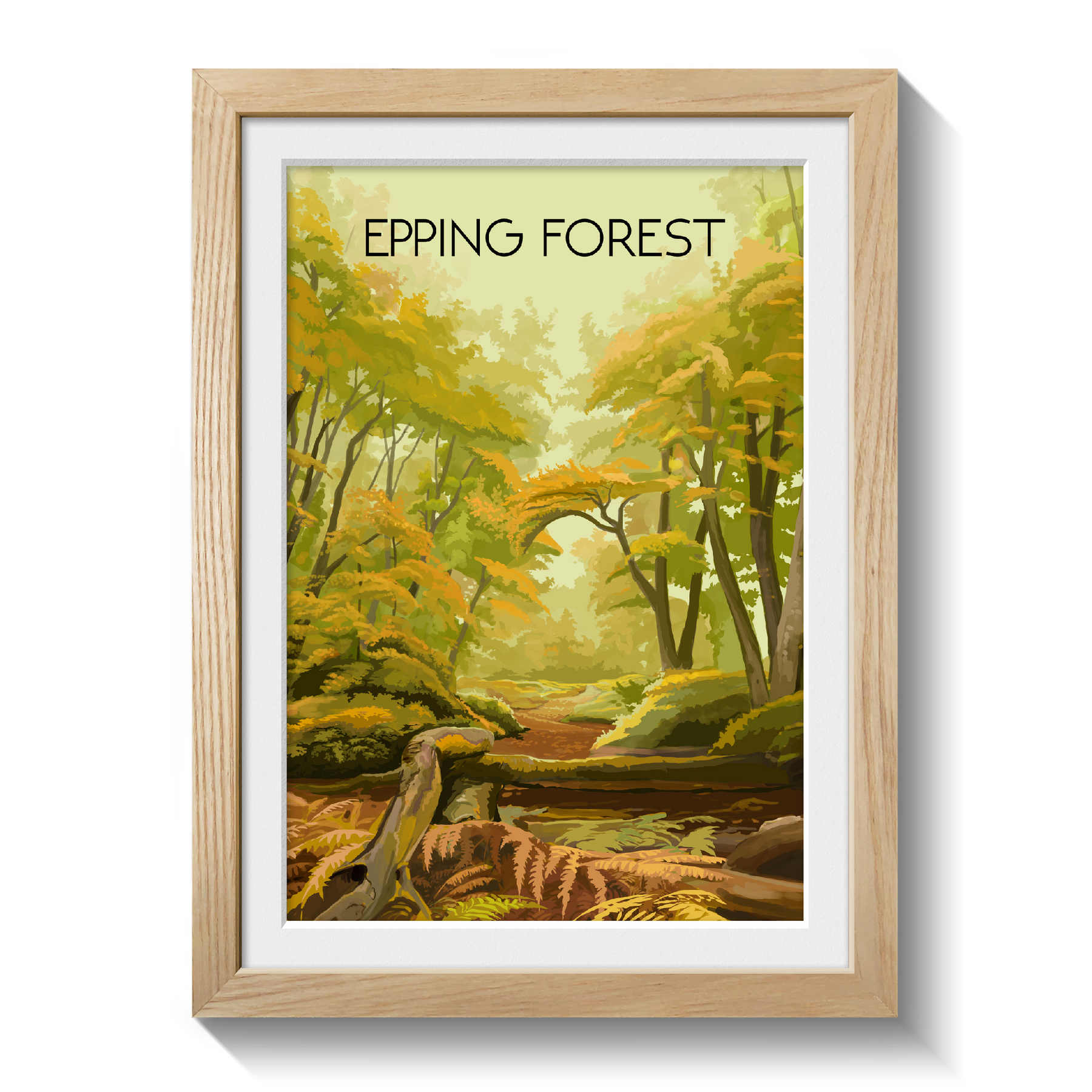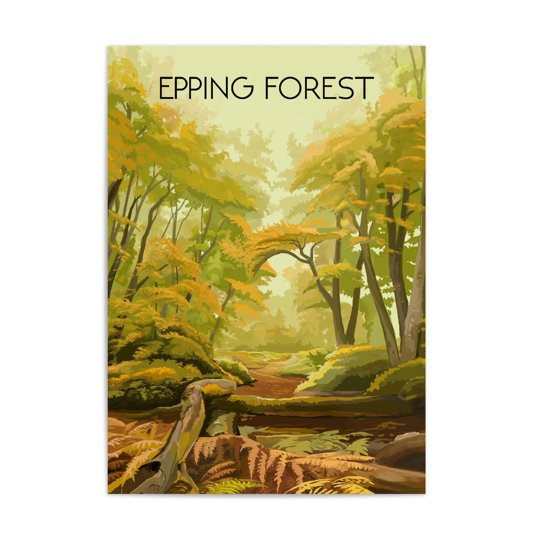 An original travel poster featuring the awesome Epping Forest, which straddles the border between Essex and Greater London.