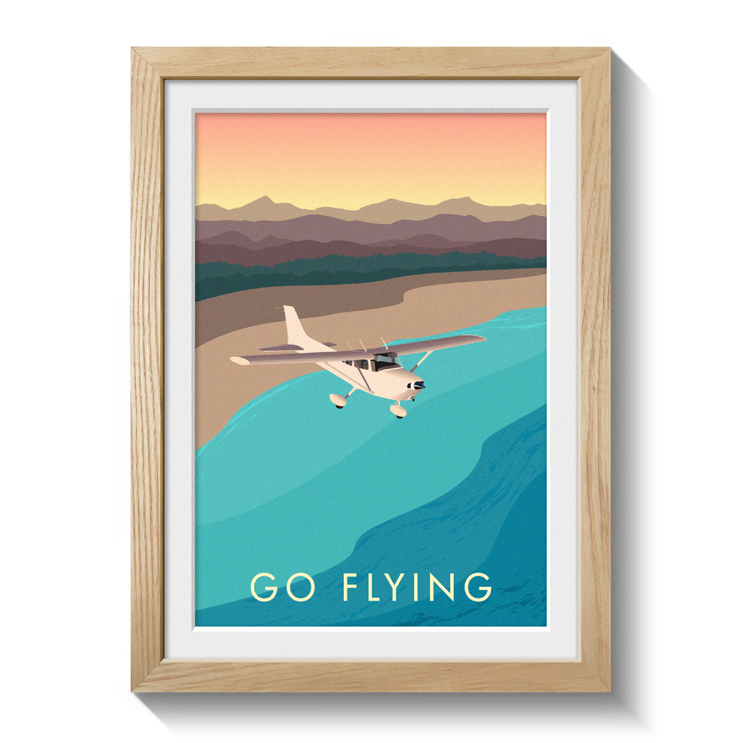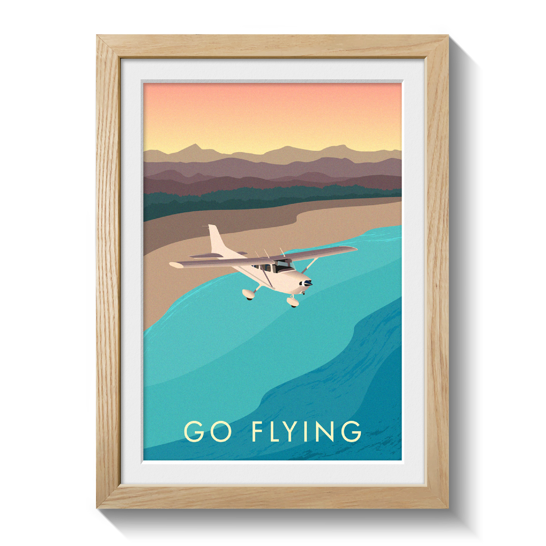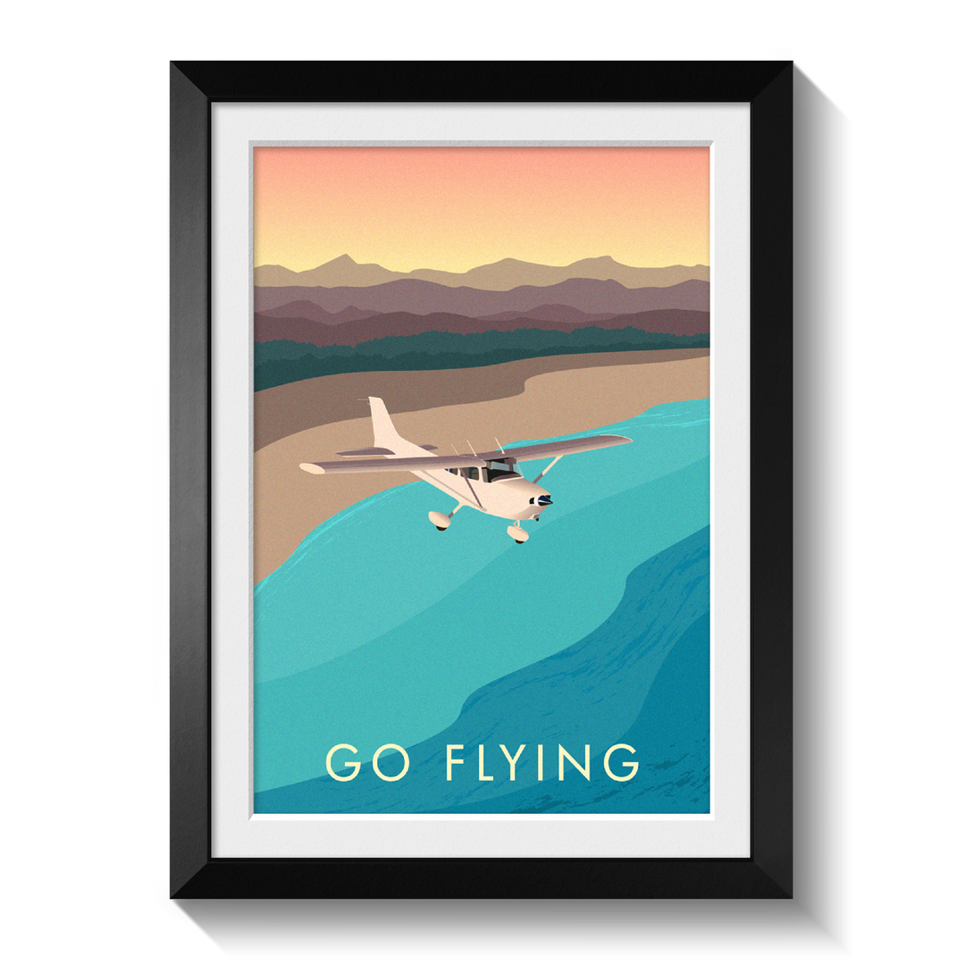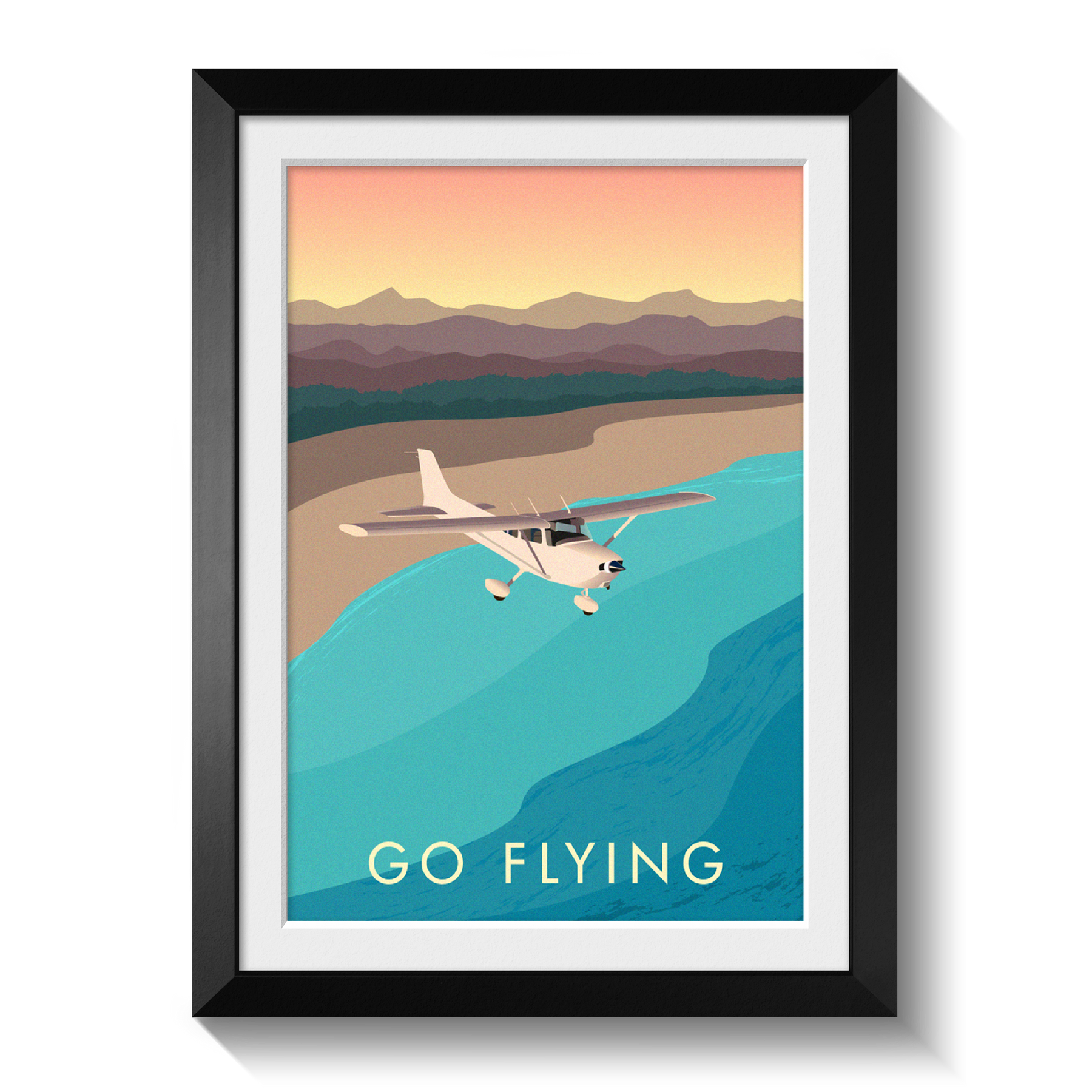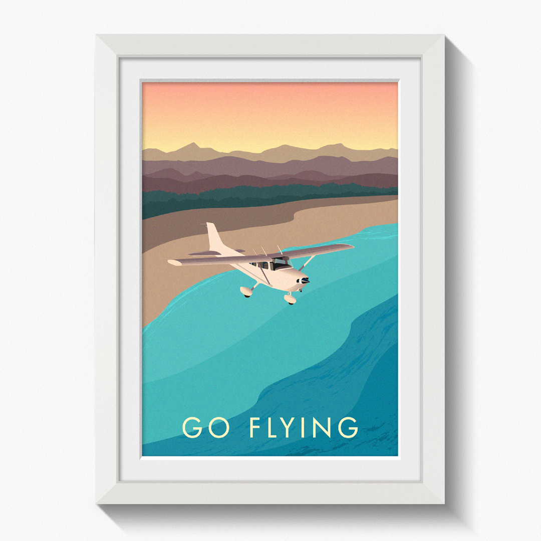 This is an original travel poster celebrating the hobby of flying. There are 28,000 Private Pilot Licence holders in the UK, many of whom fly small aircraft such as the Cessna, pictured here.
