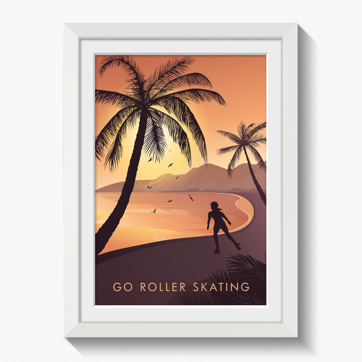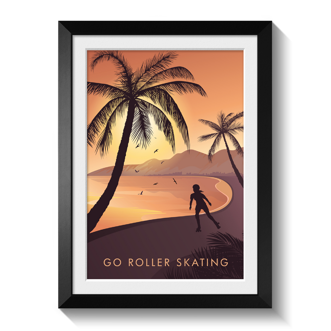 This is an original travel poster celebrating the popular sport Roller Skating. A perfect gift for the Roller Skater or Blader in your life or a great way to celebrate your love of your favourite sport.
