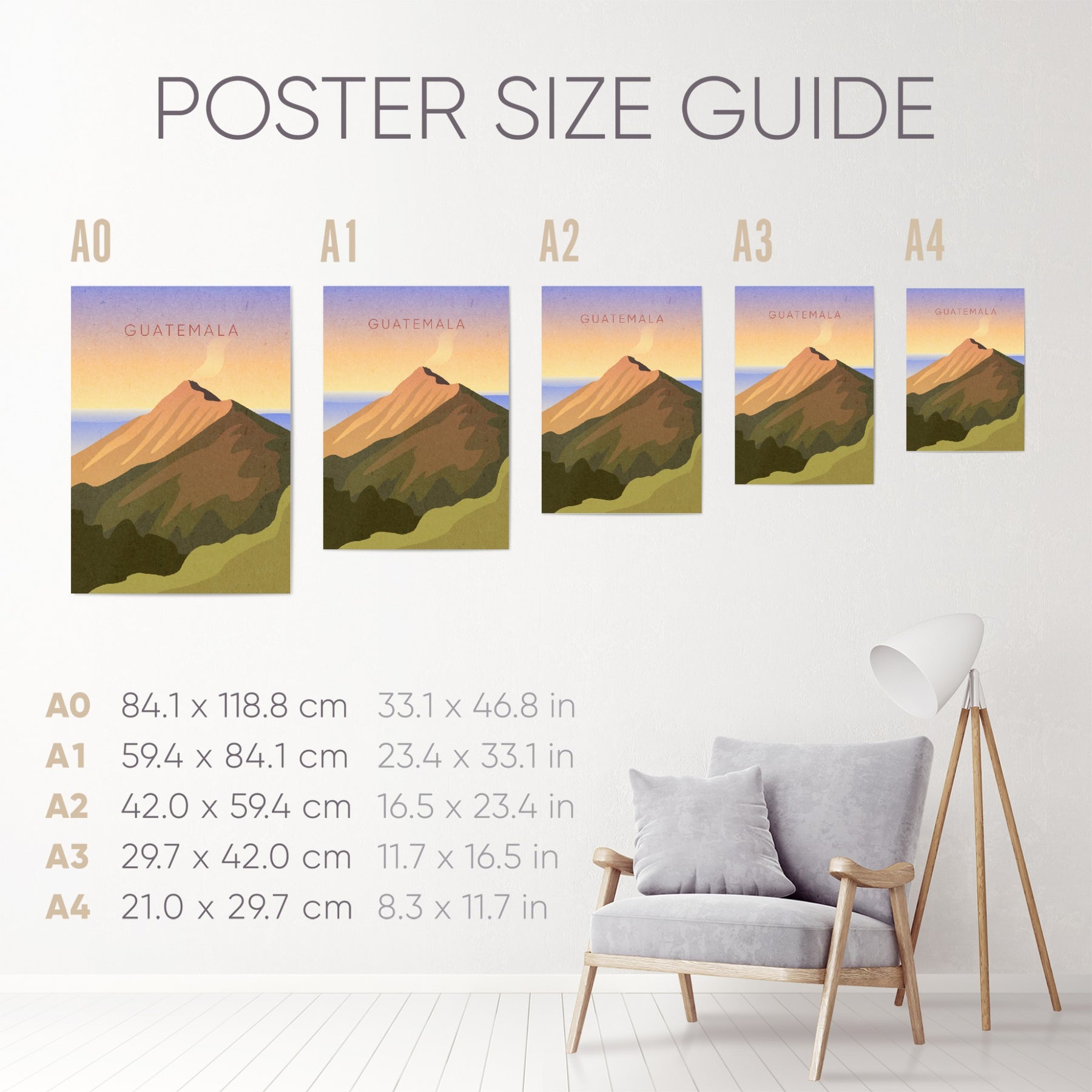 This Guatemala travel poster highlights the striking beauty of Volcán Pacaya in a minimalist design. Perfect for adventure seekers and nature lovers, it captures the dramatic landscapes of one of Central America’s active volcanoes. A stylish decor piece, celebrating Guatemala’s unique natural wonders and inspiring a spirit of exploration.