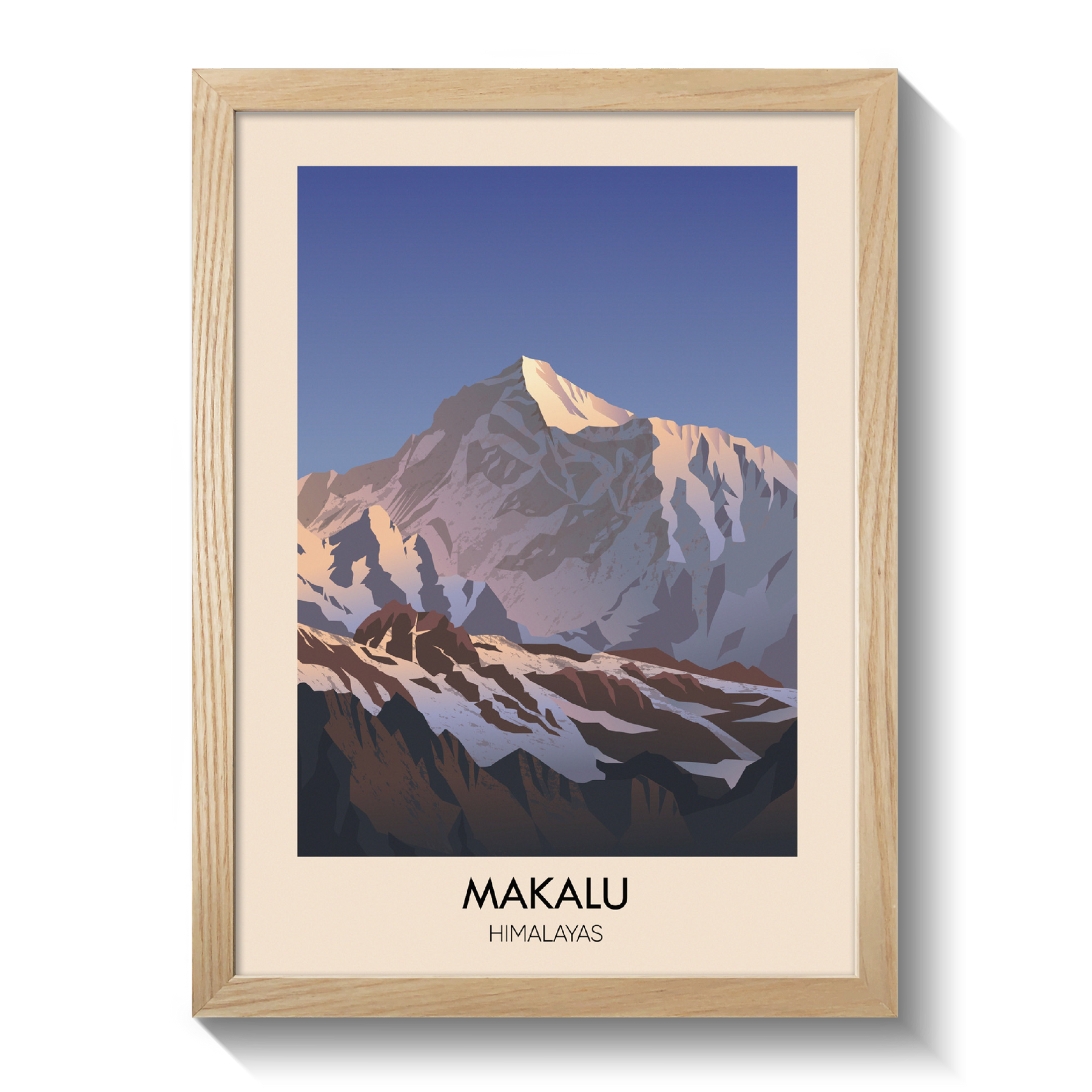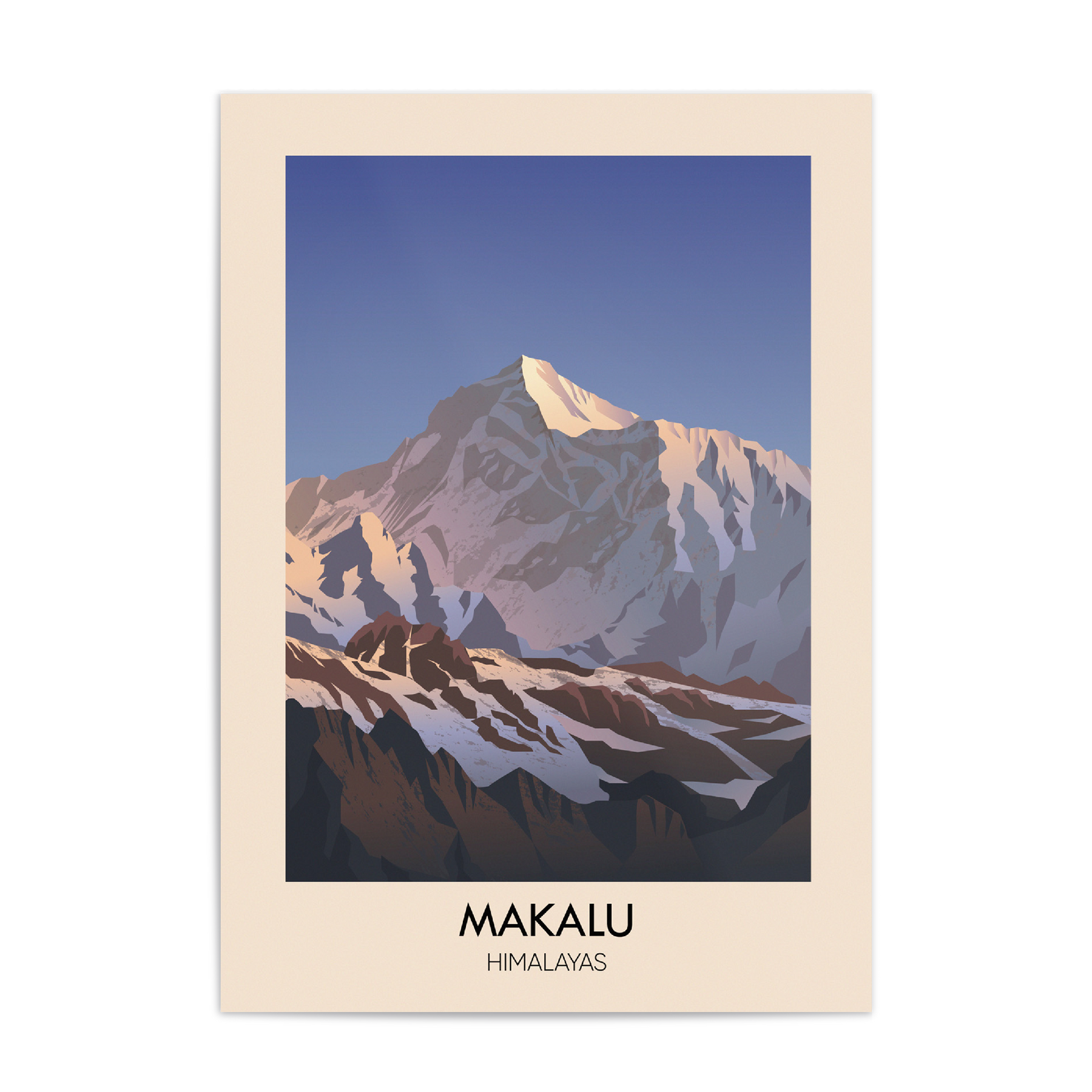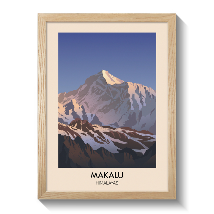 This travel poster of Makalu captures the impressive Himalayan peak in simple, bold detail. Ideal for mountain enthusiasts and adventure seekers, it brings a touch of natural beauty into any space, highlighting one of the world’s highest summits in a clean, inspiring design.