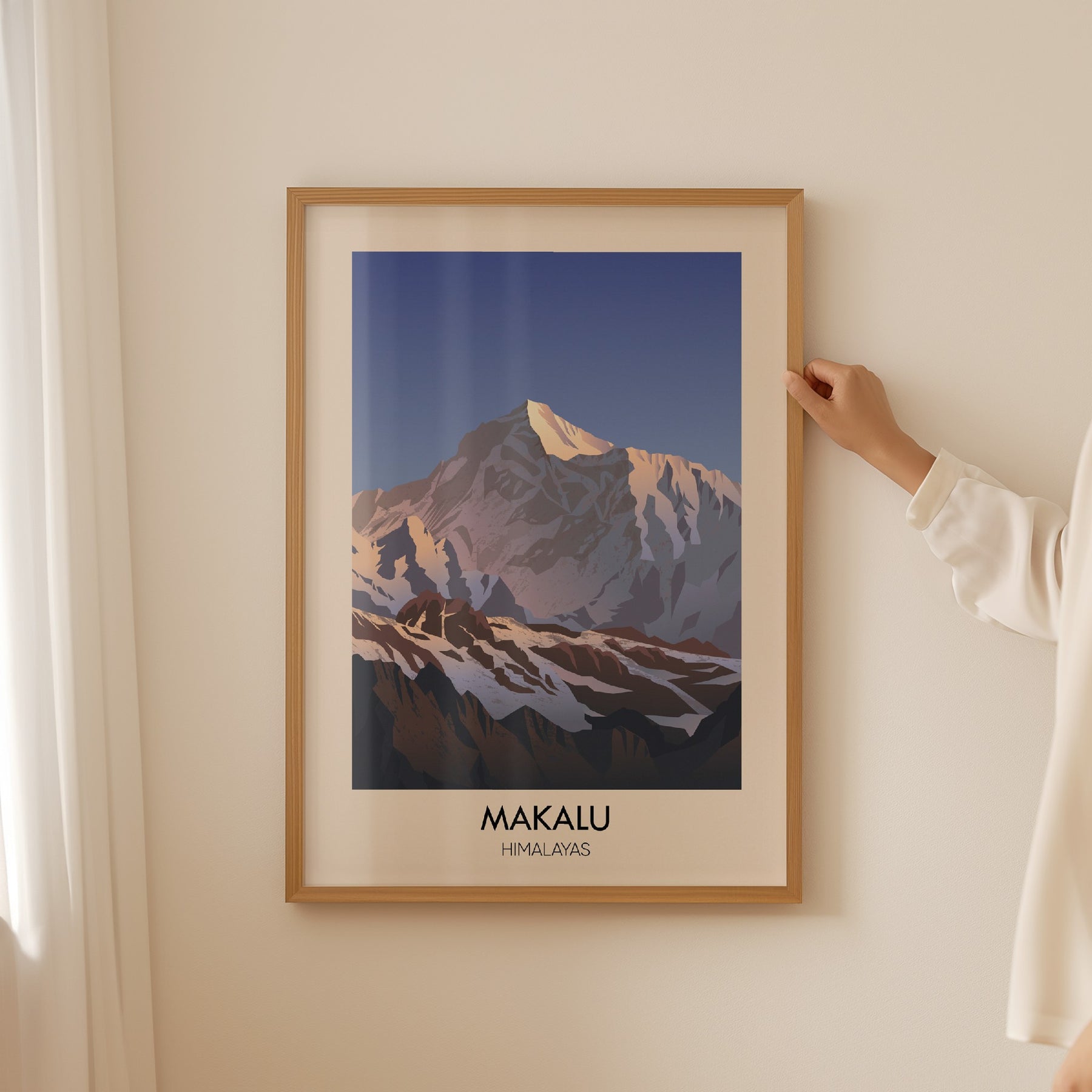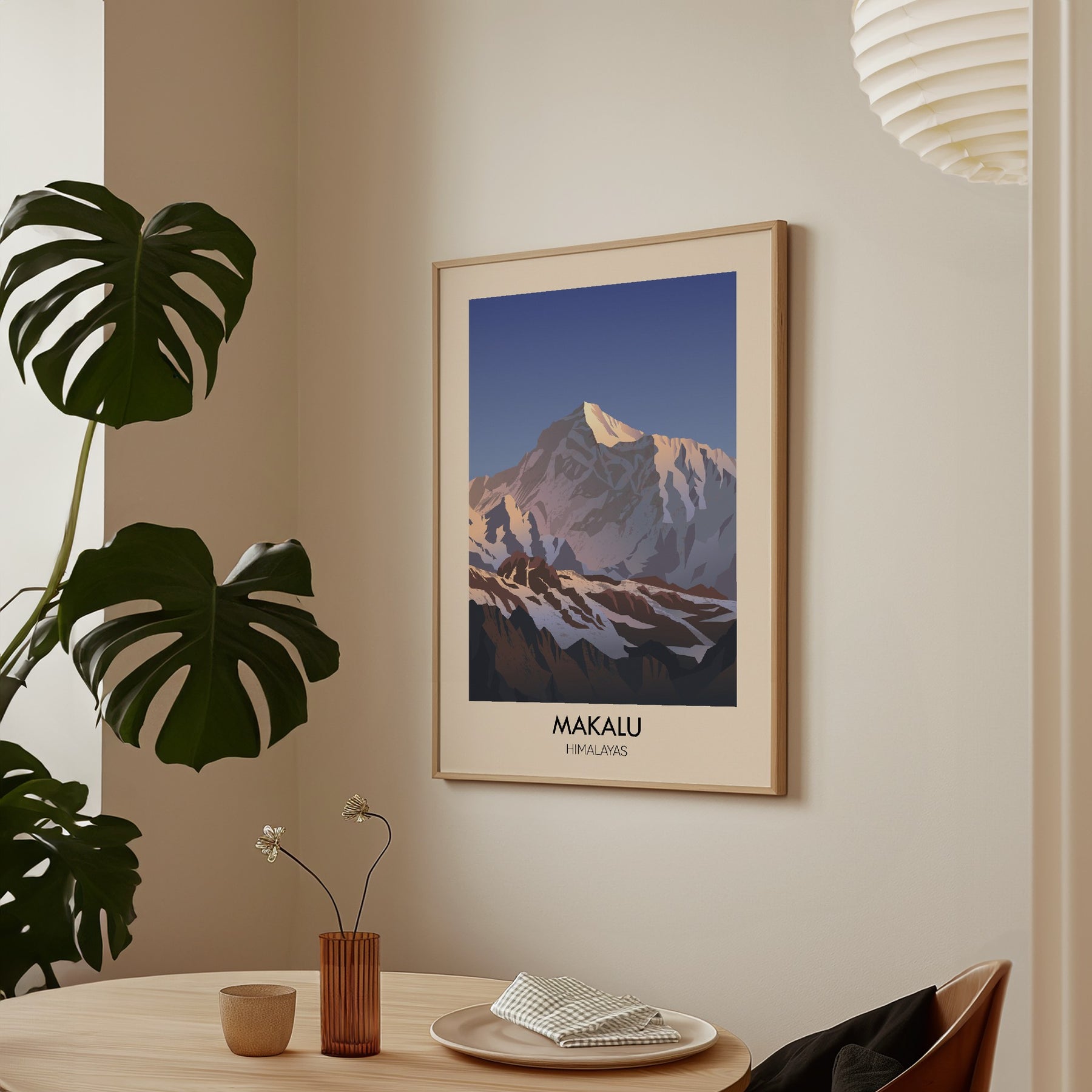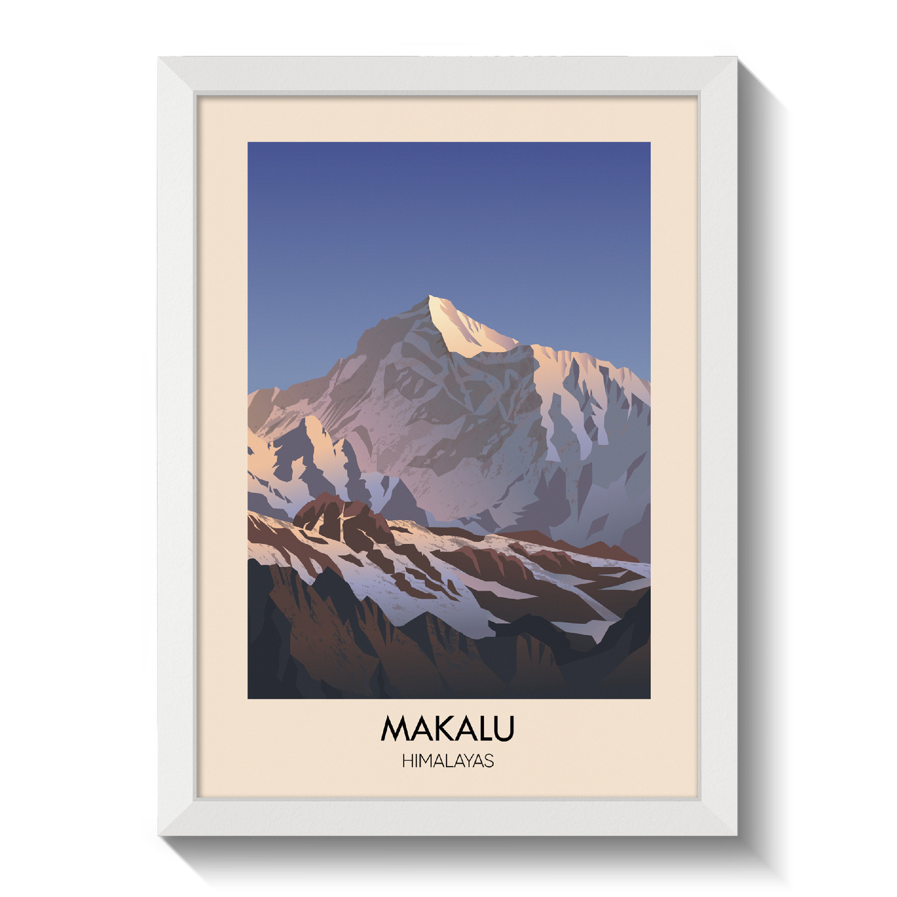This travel poster of Makalu captures the impressive Himalayan peak in simple, bold detail. Ideal for mountain enthusiasts and adventure seekers, it brings a touch of natural beauty into any space, highlighting one of the world’s highest summits in a clean, inspiring design.