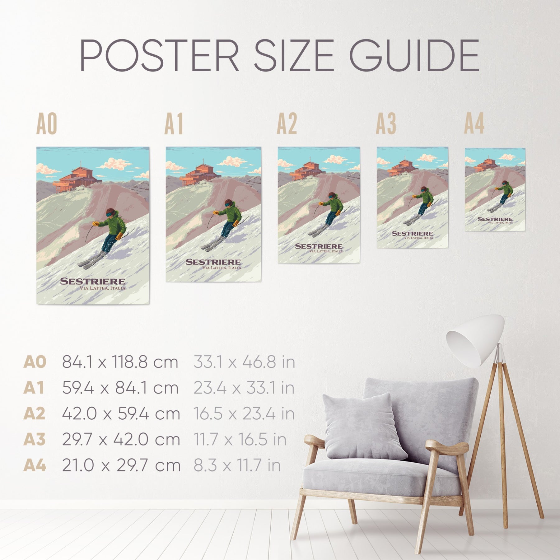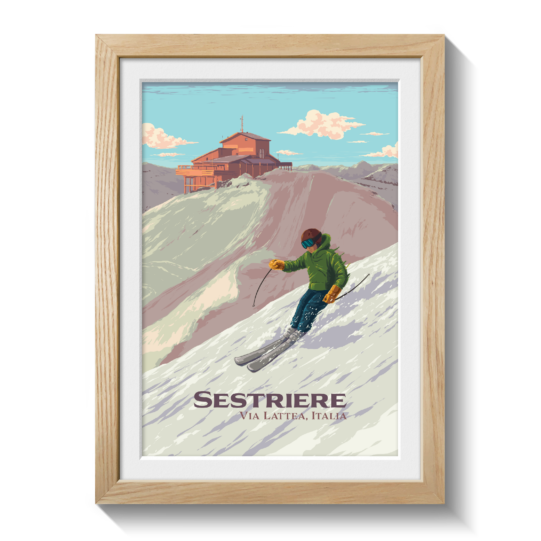 This full colour print is part of a series of designs celebrating some of Europe's best ski resorts.