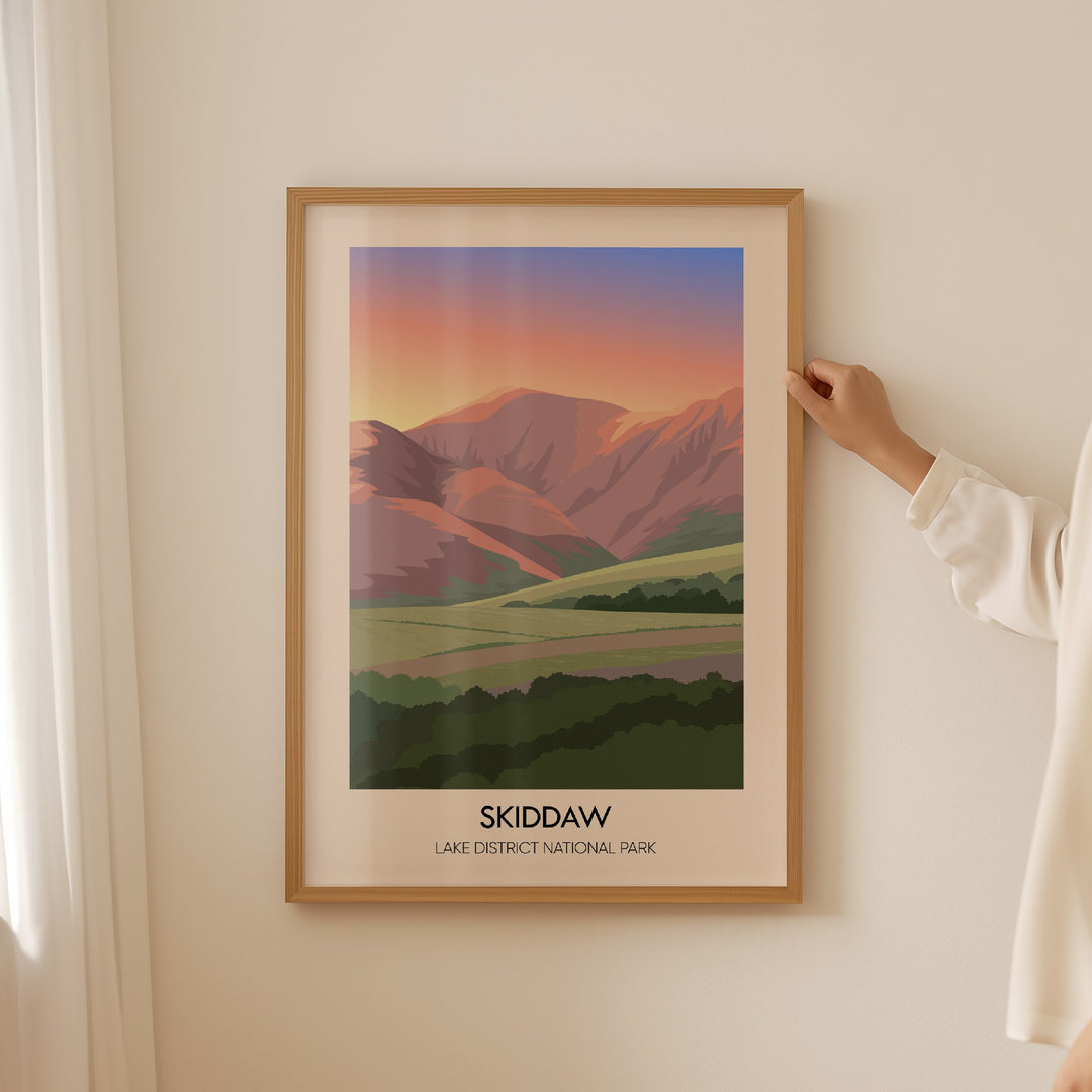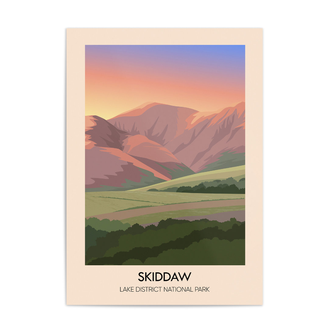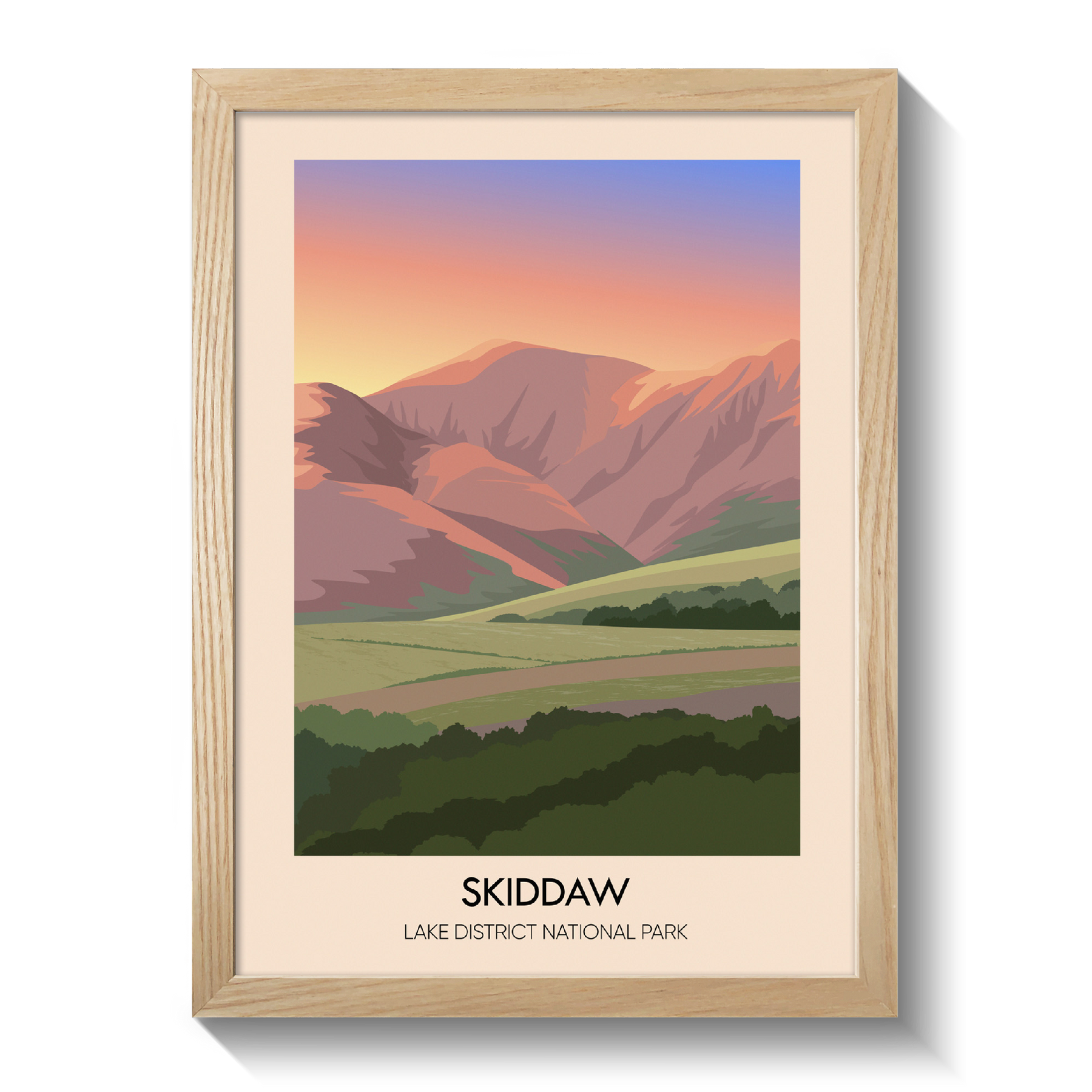 An original travel print featuring Skiddaw Mountain in Cumbria in the Lake District National Park. Skiddaw is the sixth highest mountain in England.