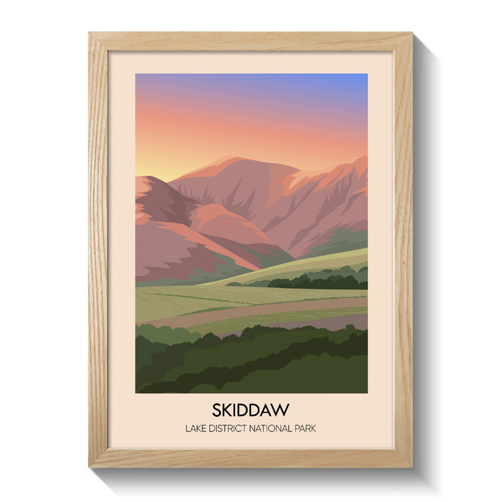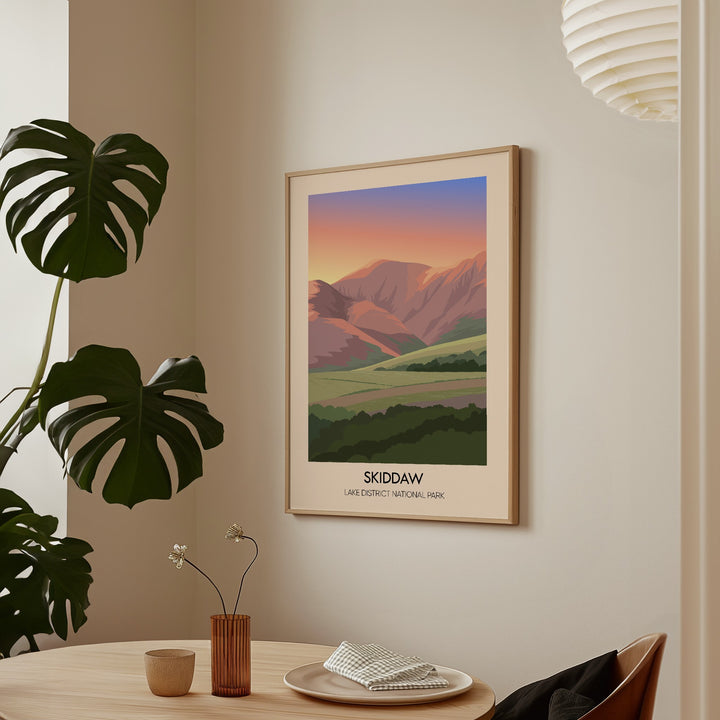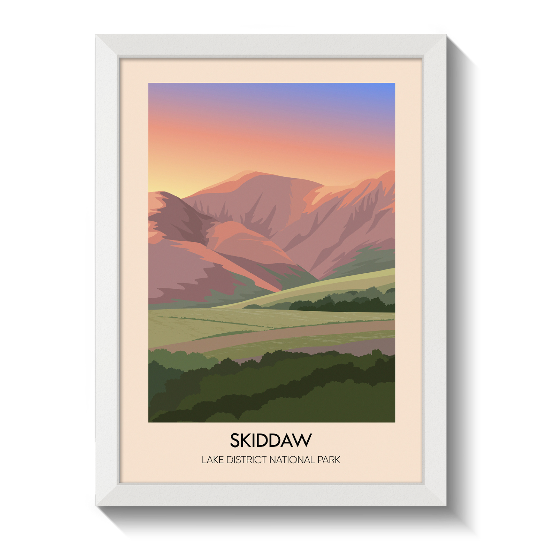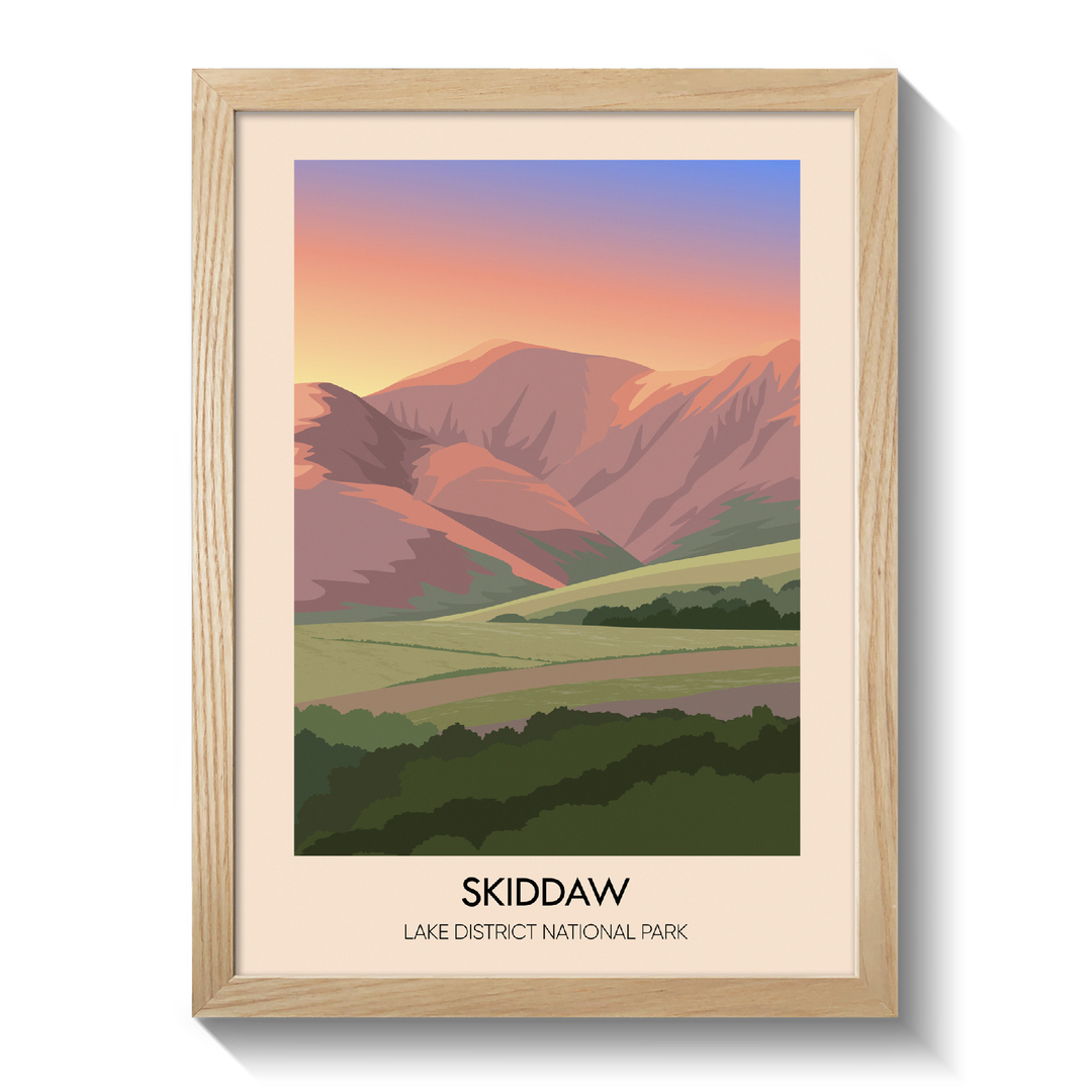 An original travel print featuring Skiddaw Mountain in Cumbria in the Lake District National Park. Skiddaw is the sixth highest mountain in England.
