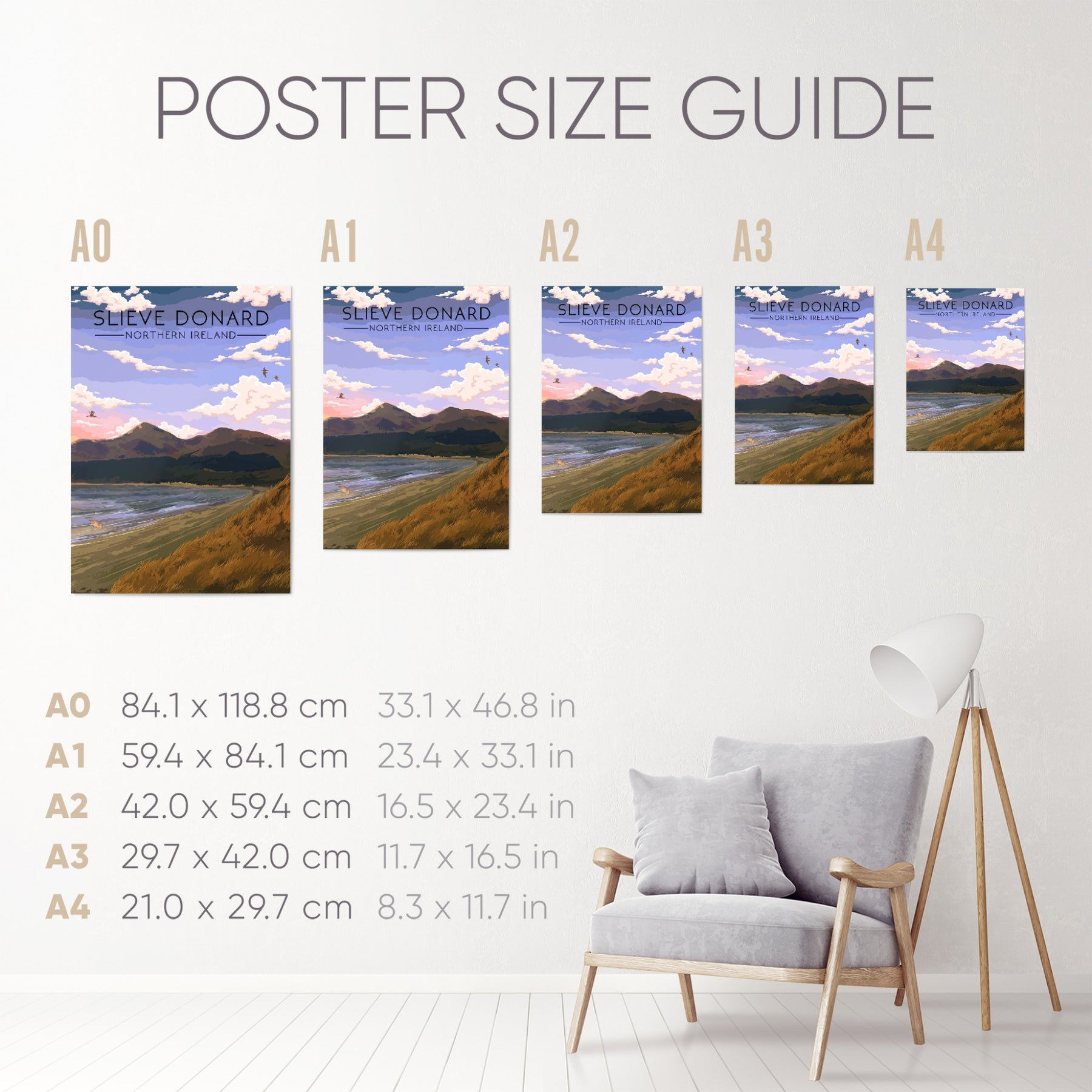 Available framed or unframed in the following sizes: A4, A3, A2, A1, A0, 50x70cm, 8x10', 12x16', 16x20', 18x24', 24x32', 30x40', 36x48'