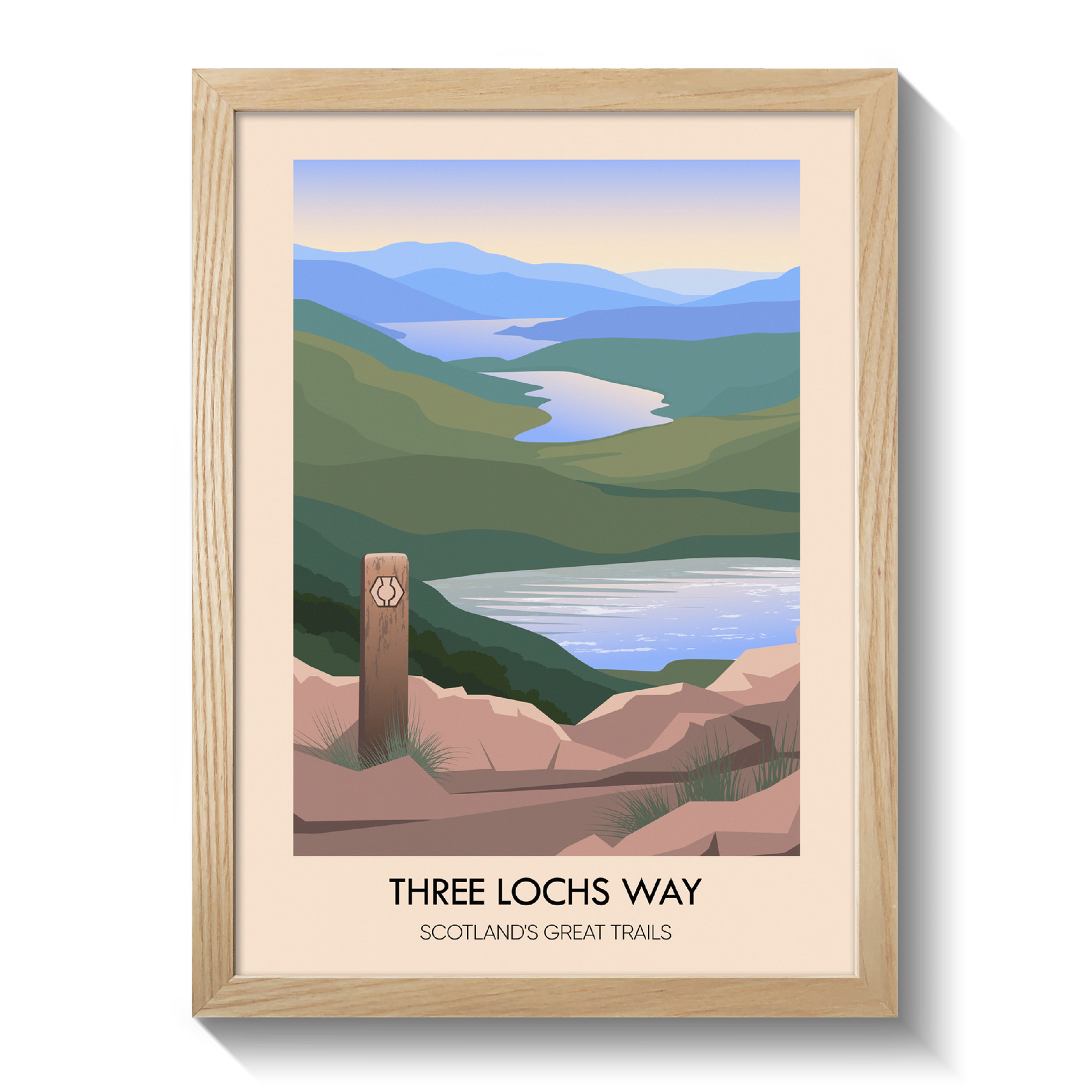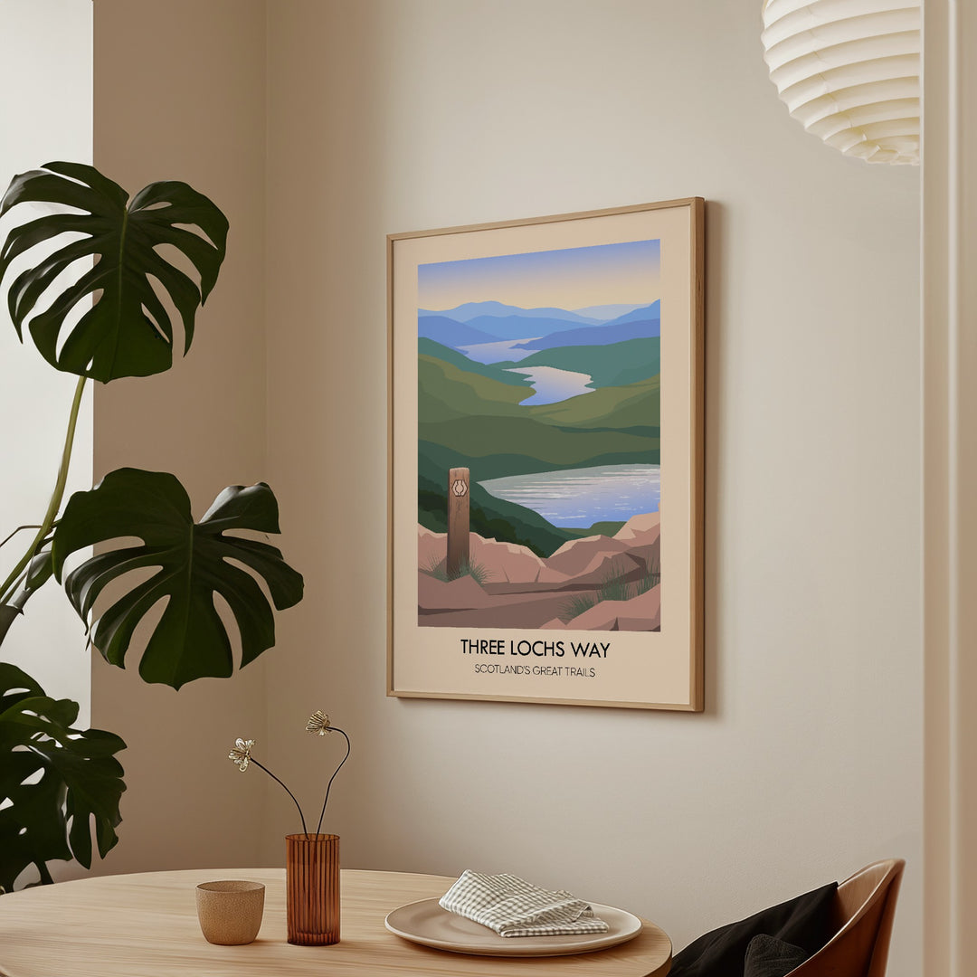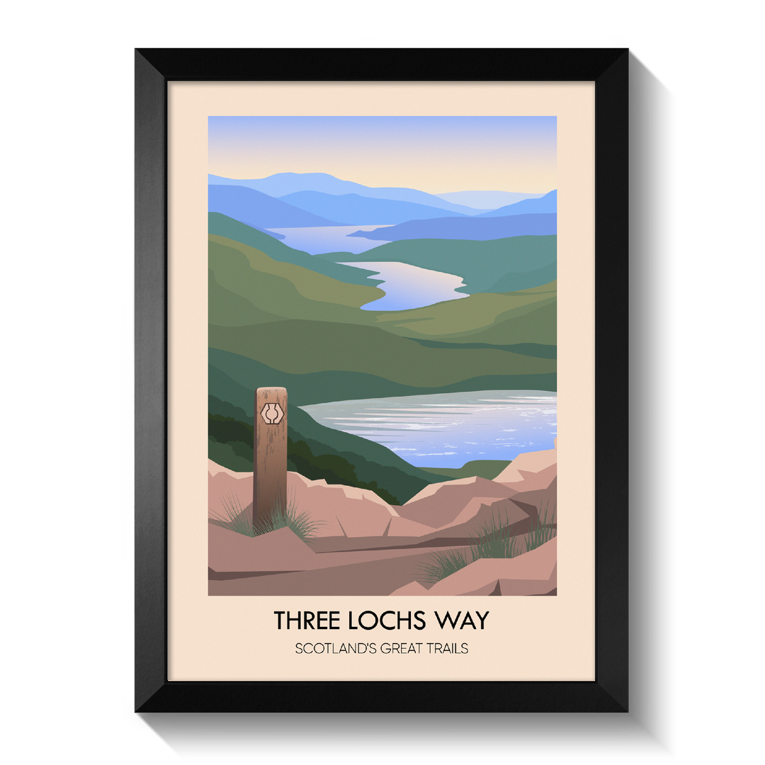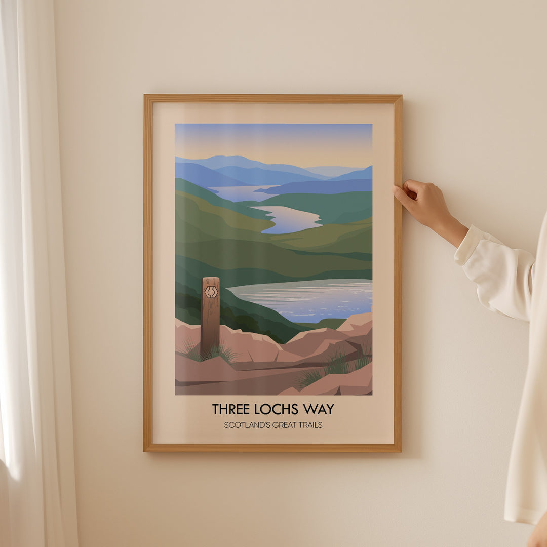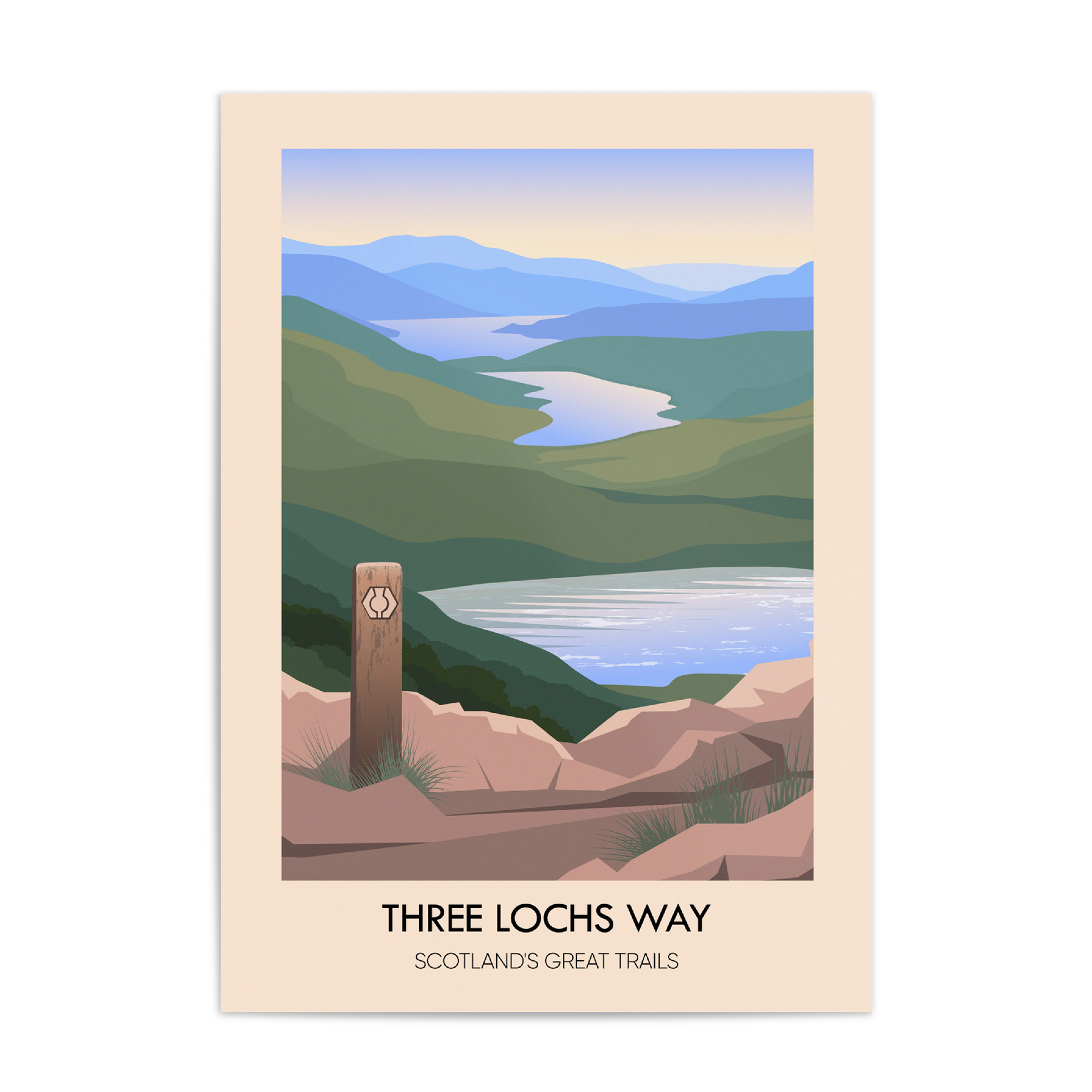 Three Lochs Way, Scotland's Great Trails travel poster.