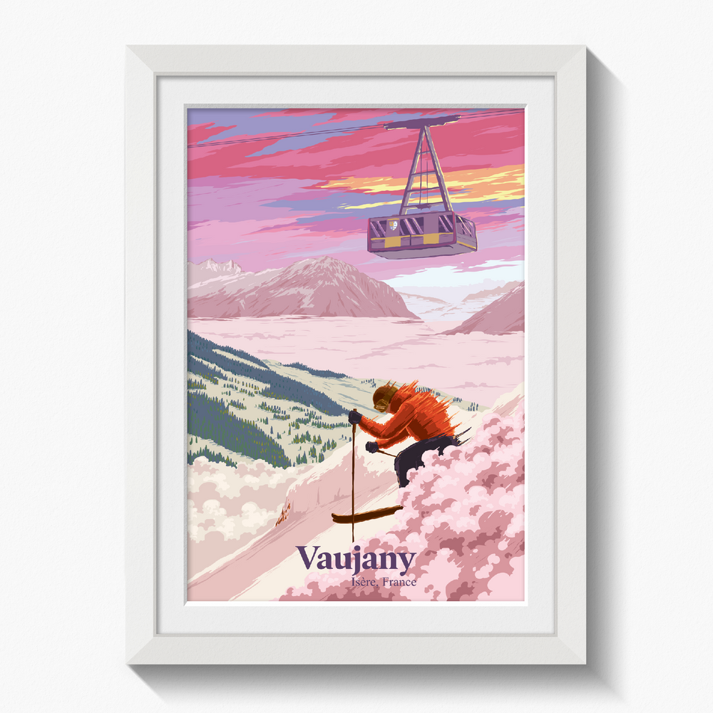 This full colour print is part of a series of designs celebrating some of Europe's best ski resorts.