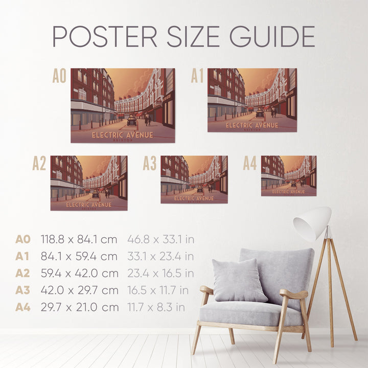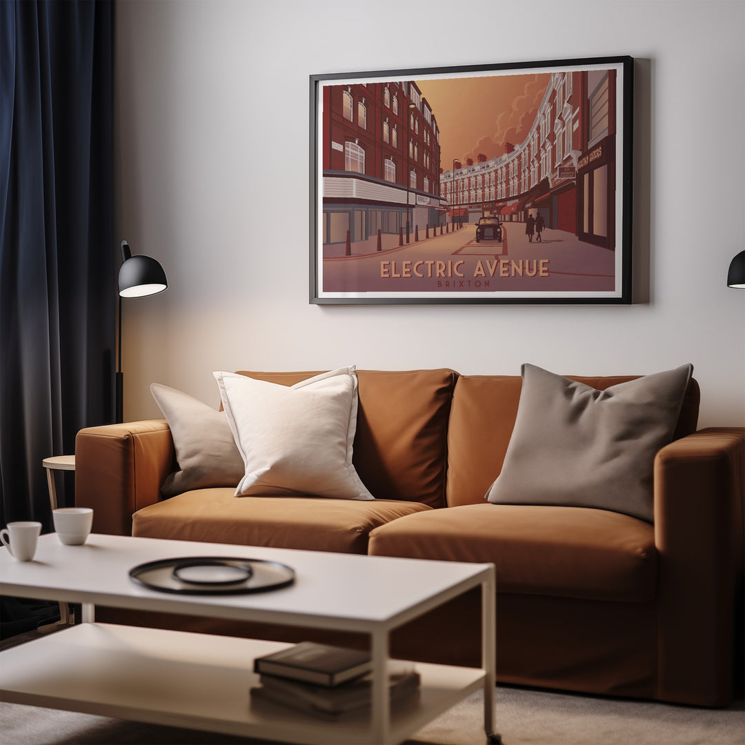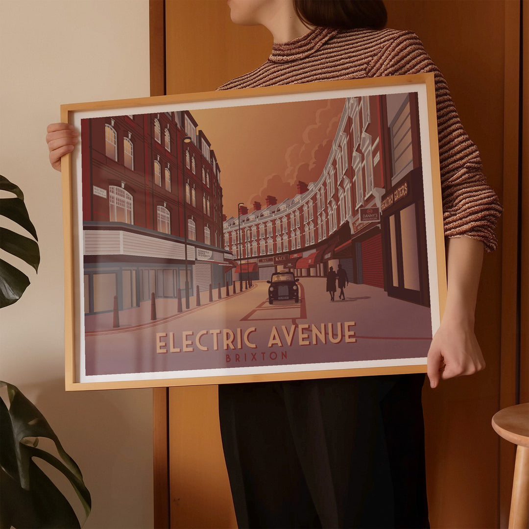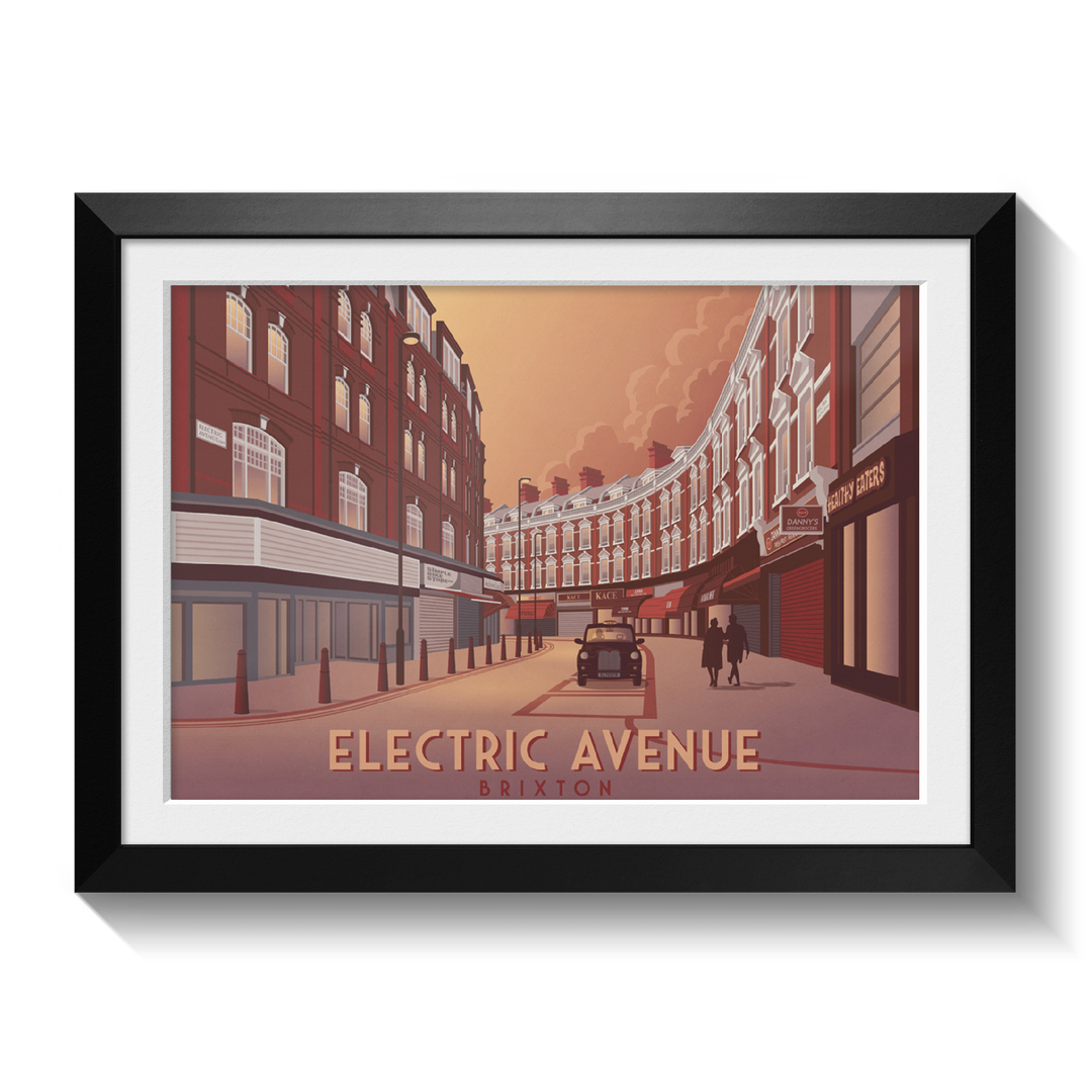 An original travel poster of the iconic Electric Avenue in South London's Brixton, known from the Eddy Grant song of the same name.