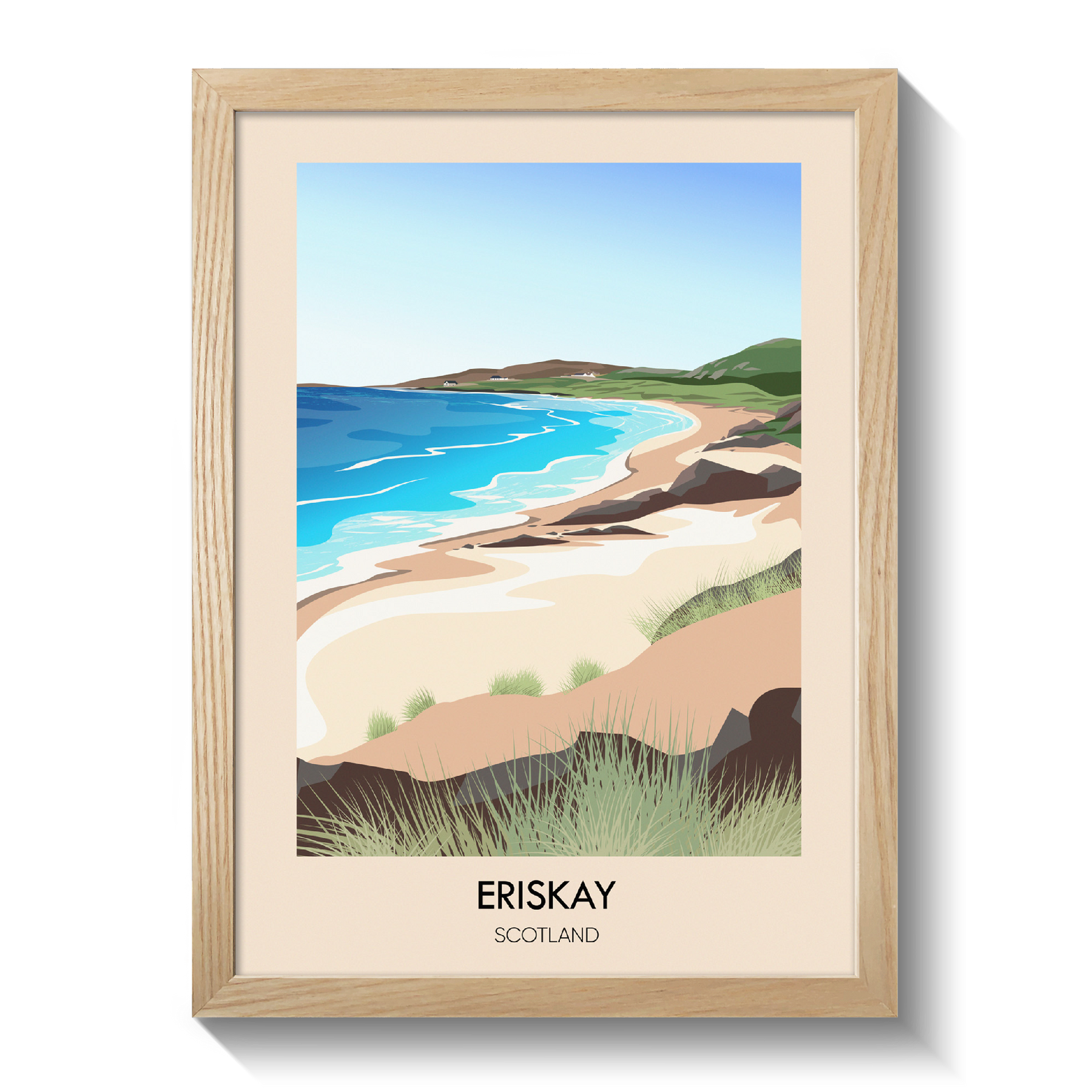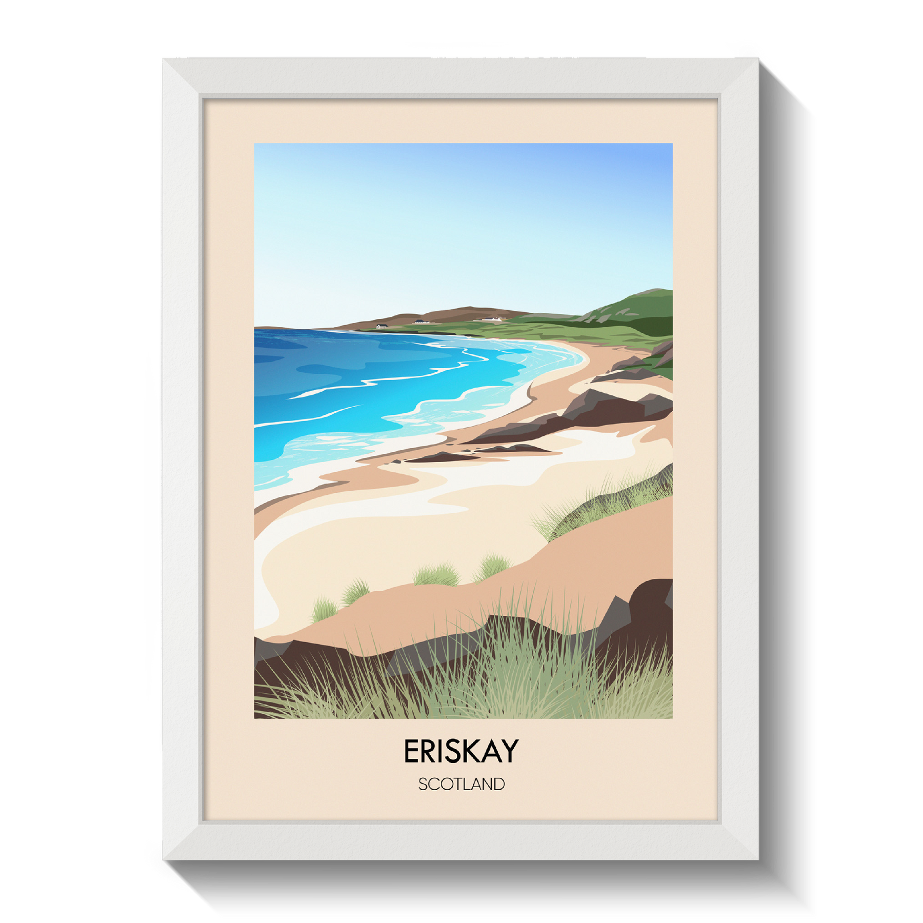 This original print features the Isle of Eriskay which lies to the South of South Uist and is connected to the isles to the north by a causeway. The name comes from the Norwegian name Èirisgeigh meaning Eric's Isle.