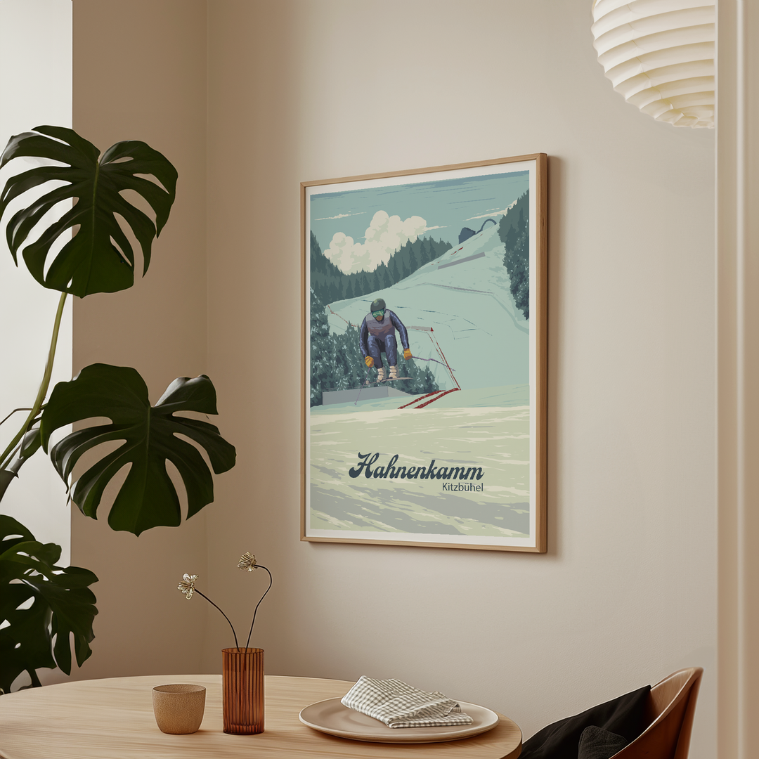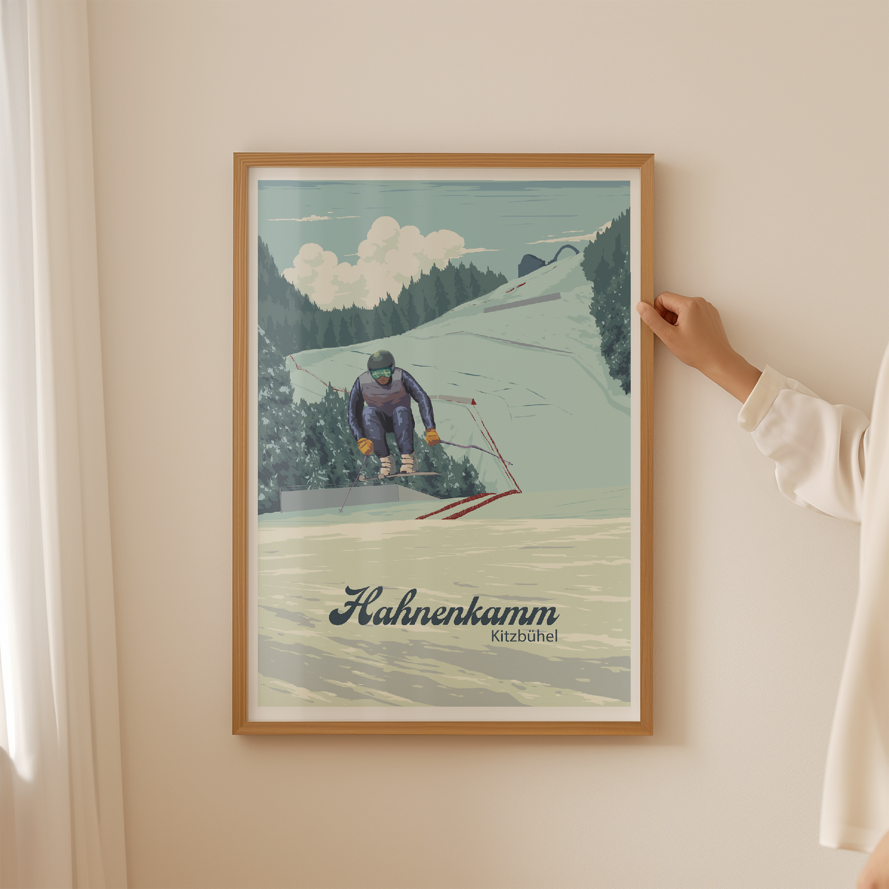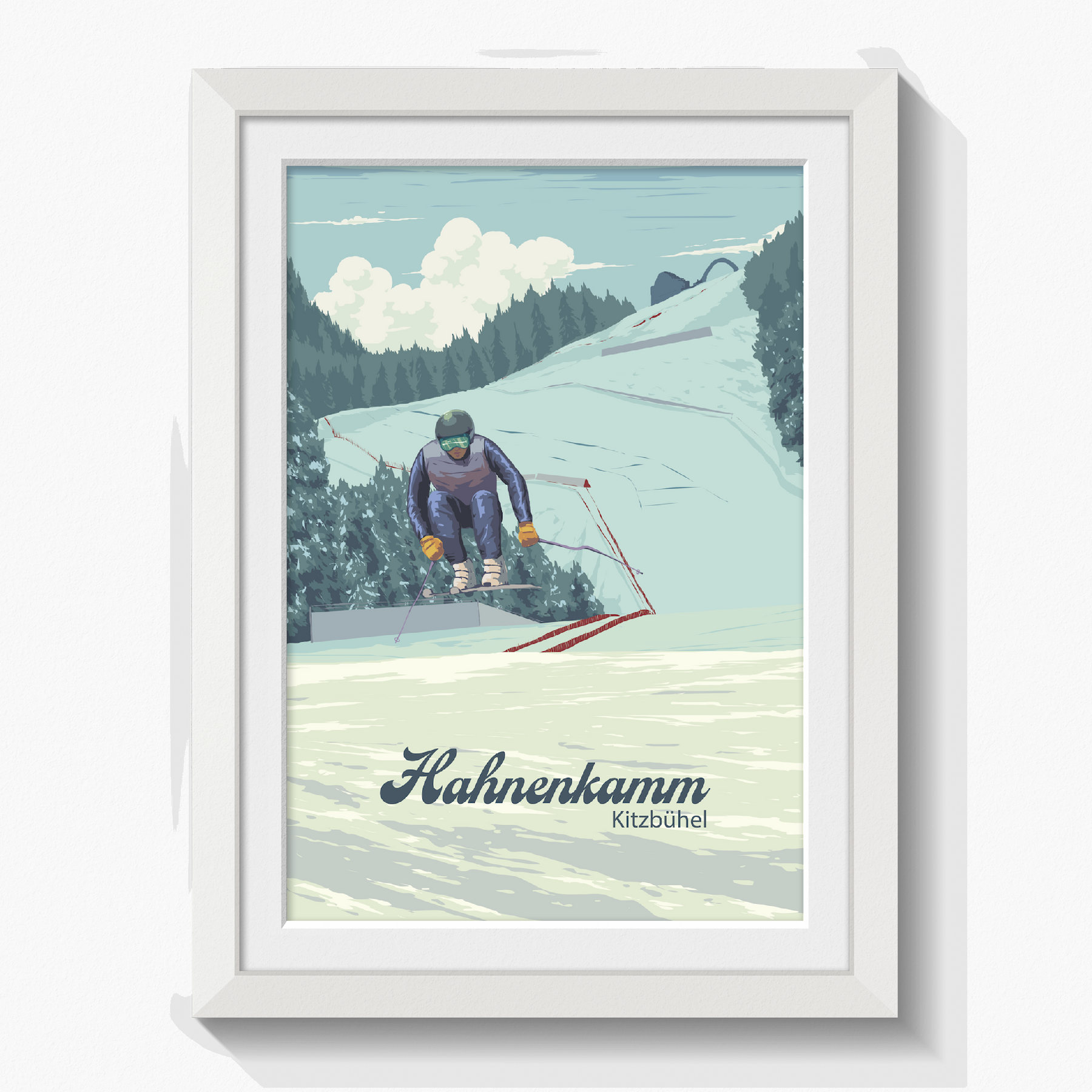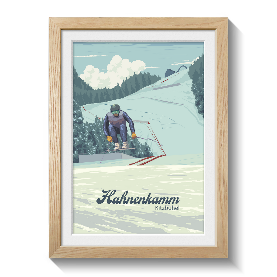 Hahnenkamm Kitzbuhel Austria Ski Resort Travel Poster
