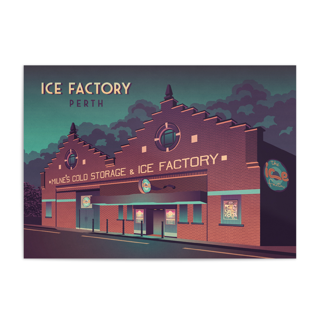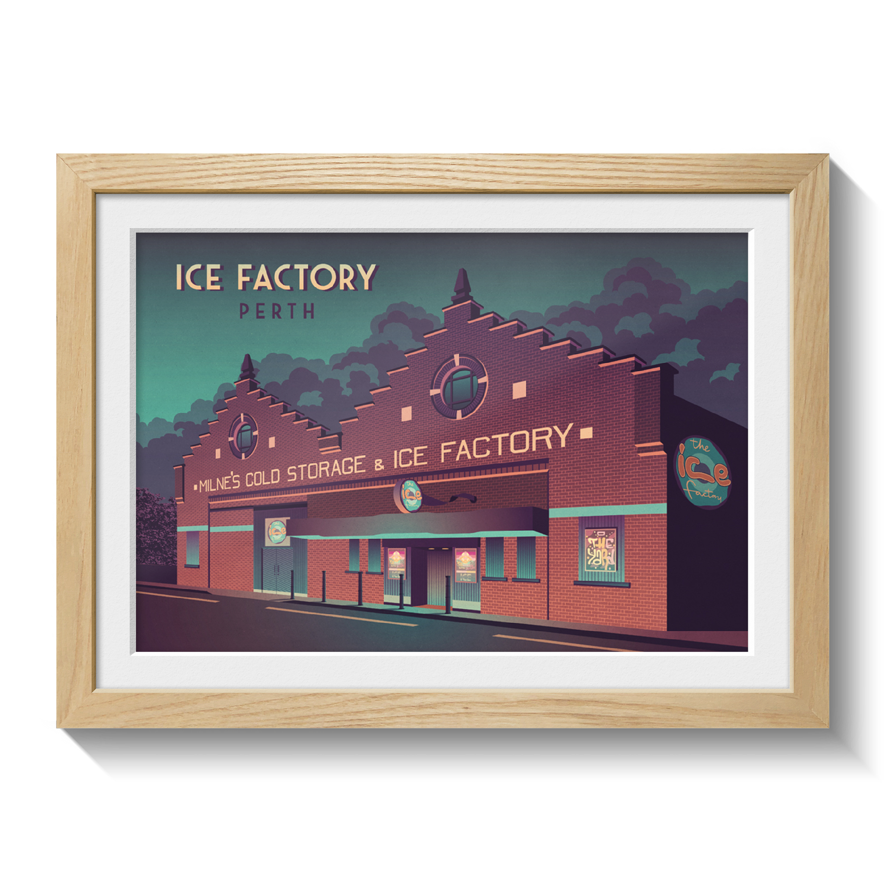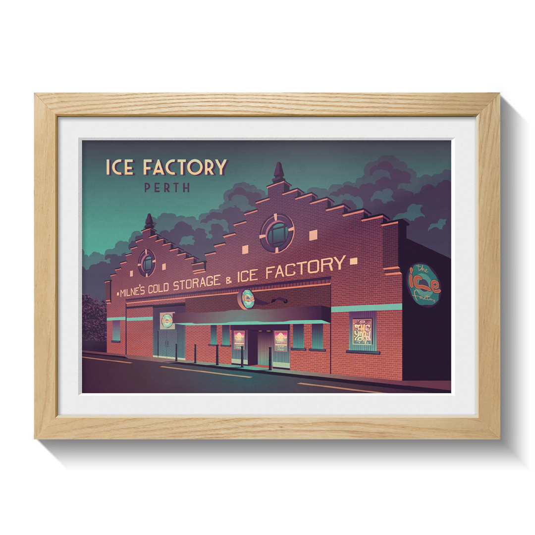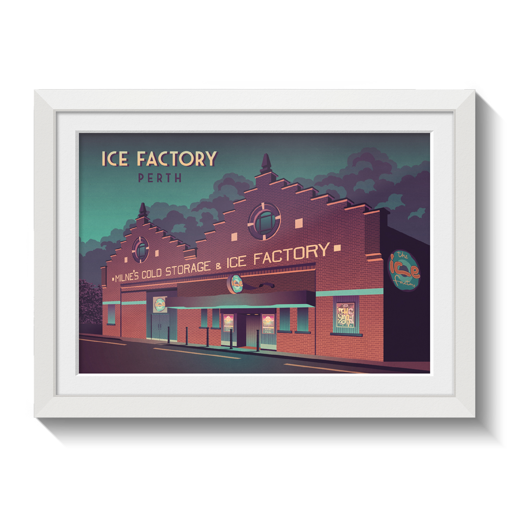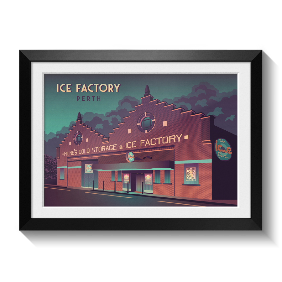 An original travel poster featuring iconic Perth Nightclub, Ice Factory.