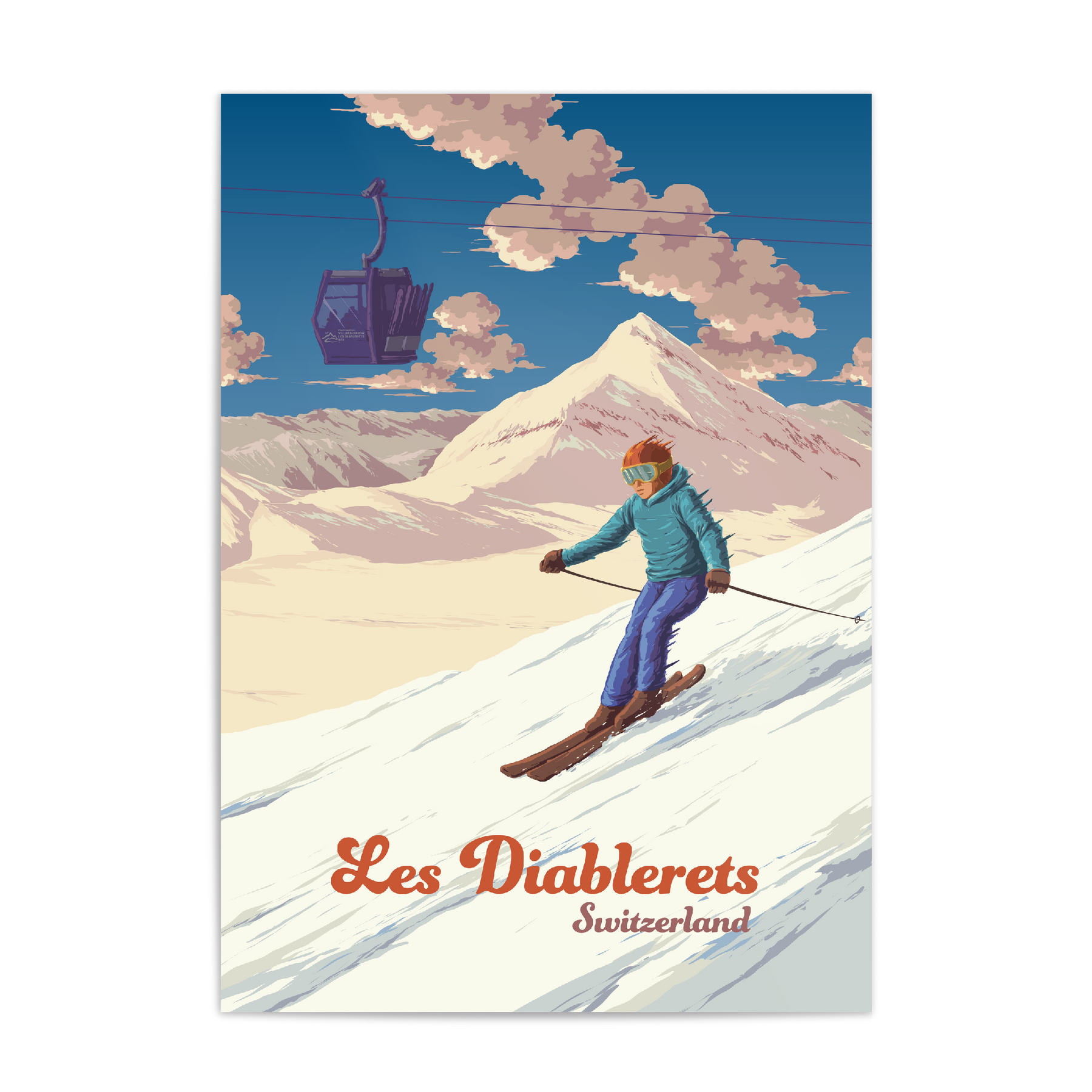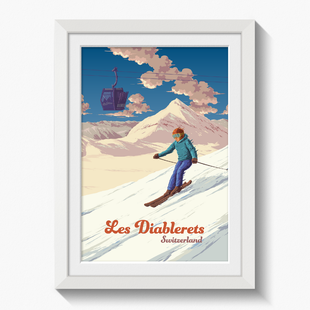 Les Diablerets Switzerland Ski Resort Travel Poster