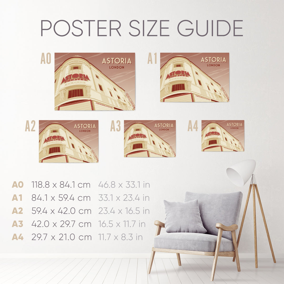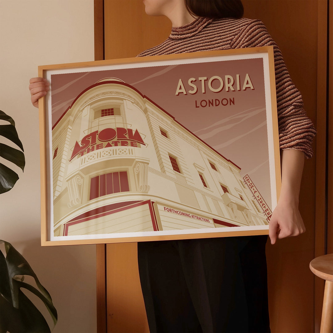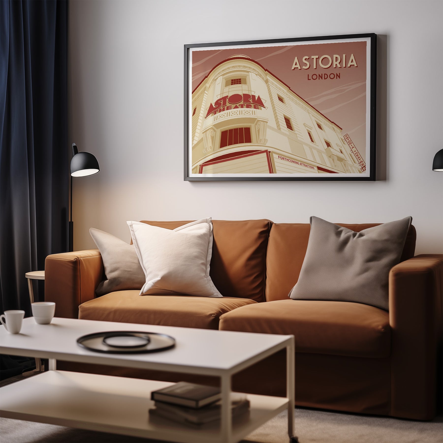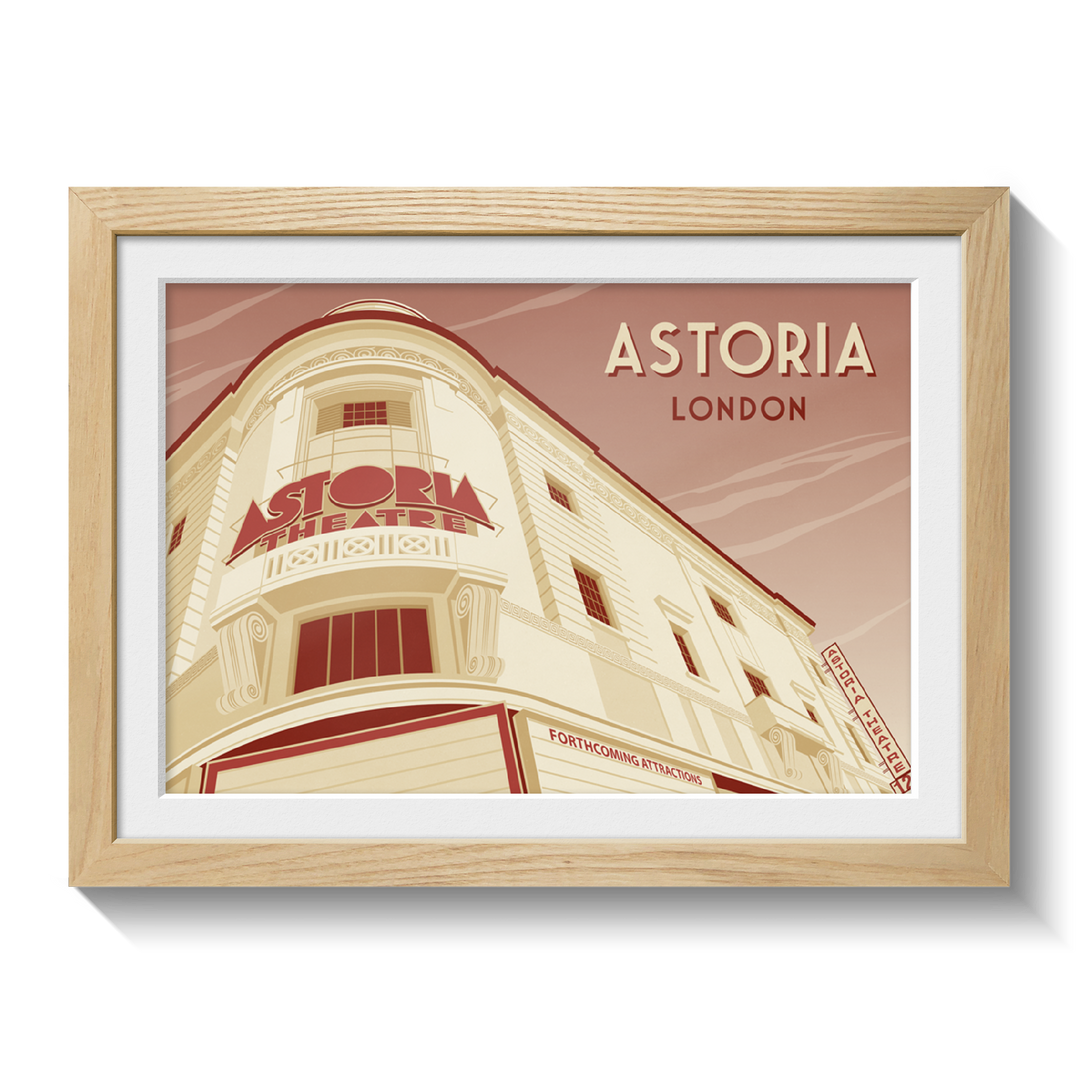 An art deco style music venue travel poster featuring the iconic London Astoria.