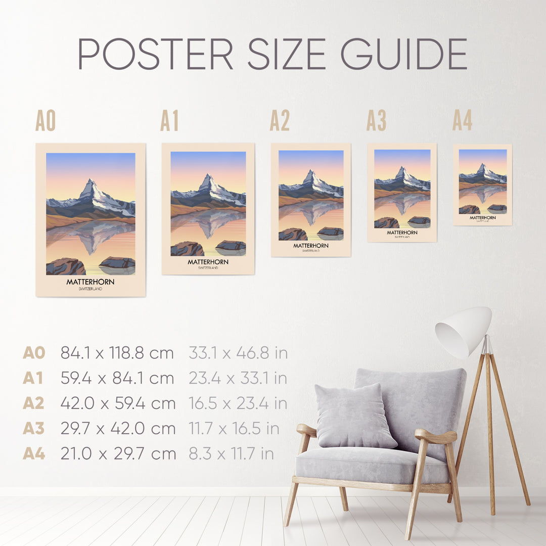This original print is part of a series of new travel poster designs celebrating the world's iconic mountains and outdoor spaces.