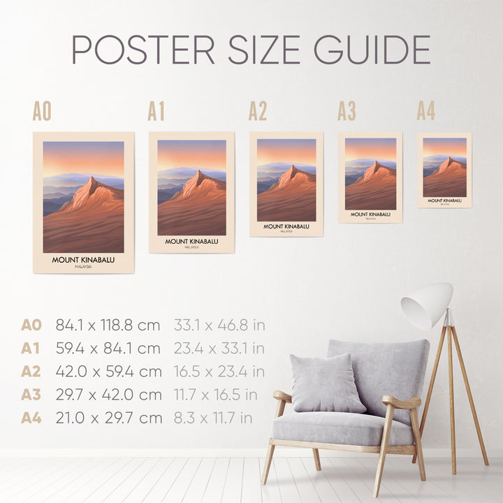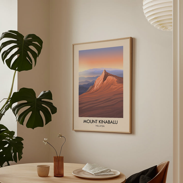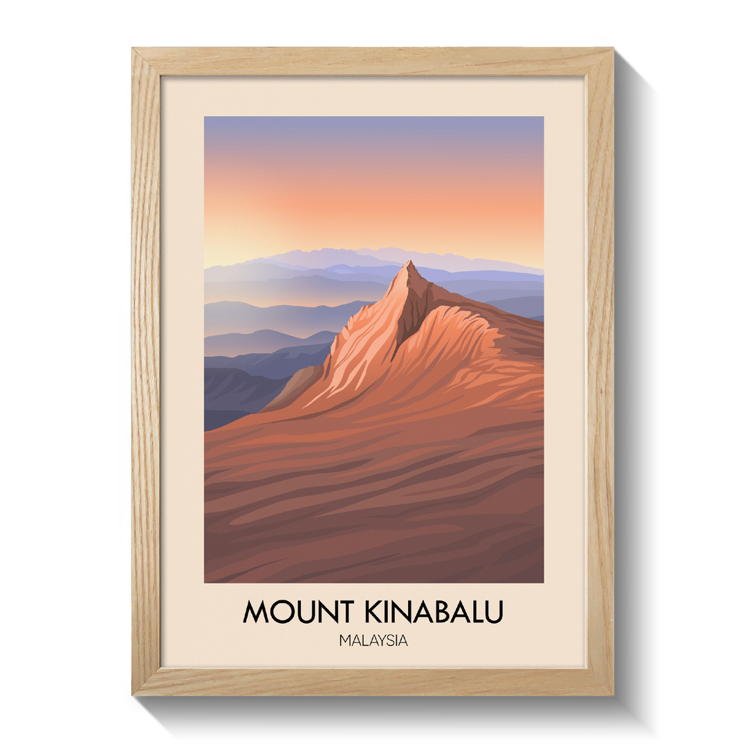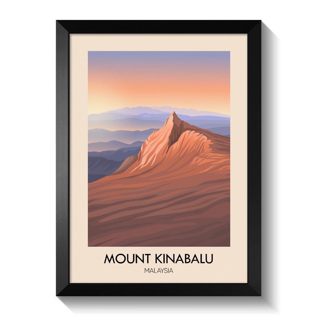 This Mount Kinabalu travel poster showcases Malaysia’s highest peak in stunning detail, ideal for adventurers and nature enthusiasts. Capturing the rugged beauty of this iconic mountain, it brings a touch of Sabah’s natural wonder to any space. Perfect for adding an inspiring, adventurous vibe to your home or office decor.