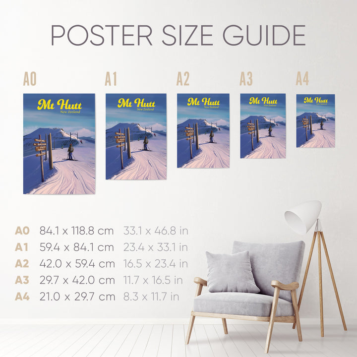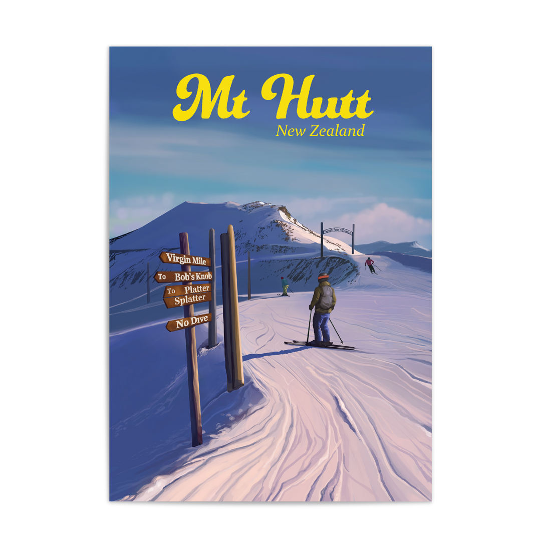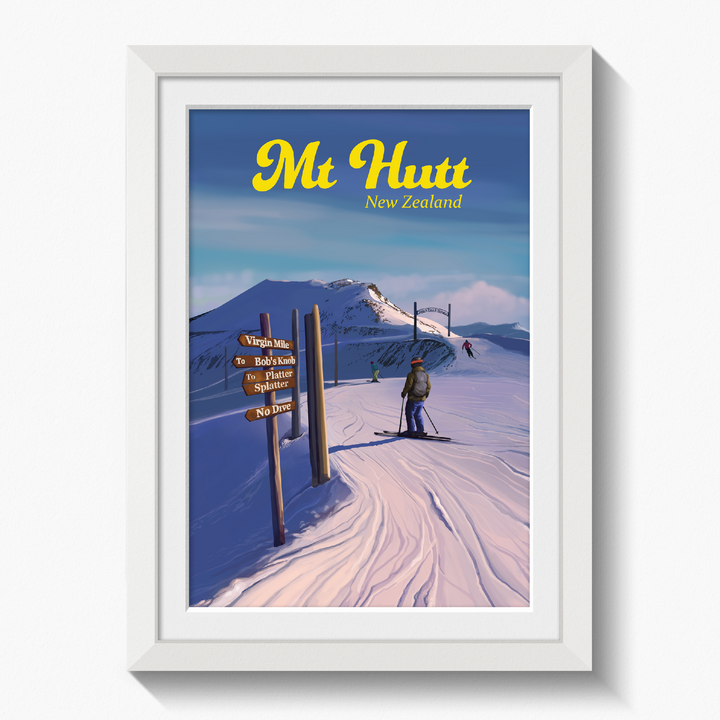 Mt Hutt Ski Resort New Zealand poster.