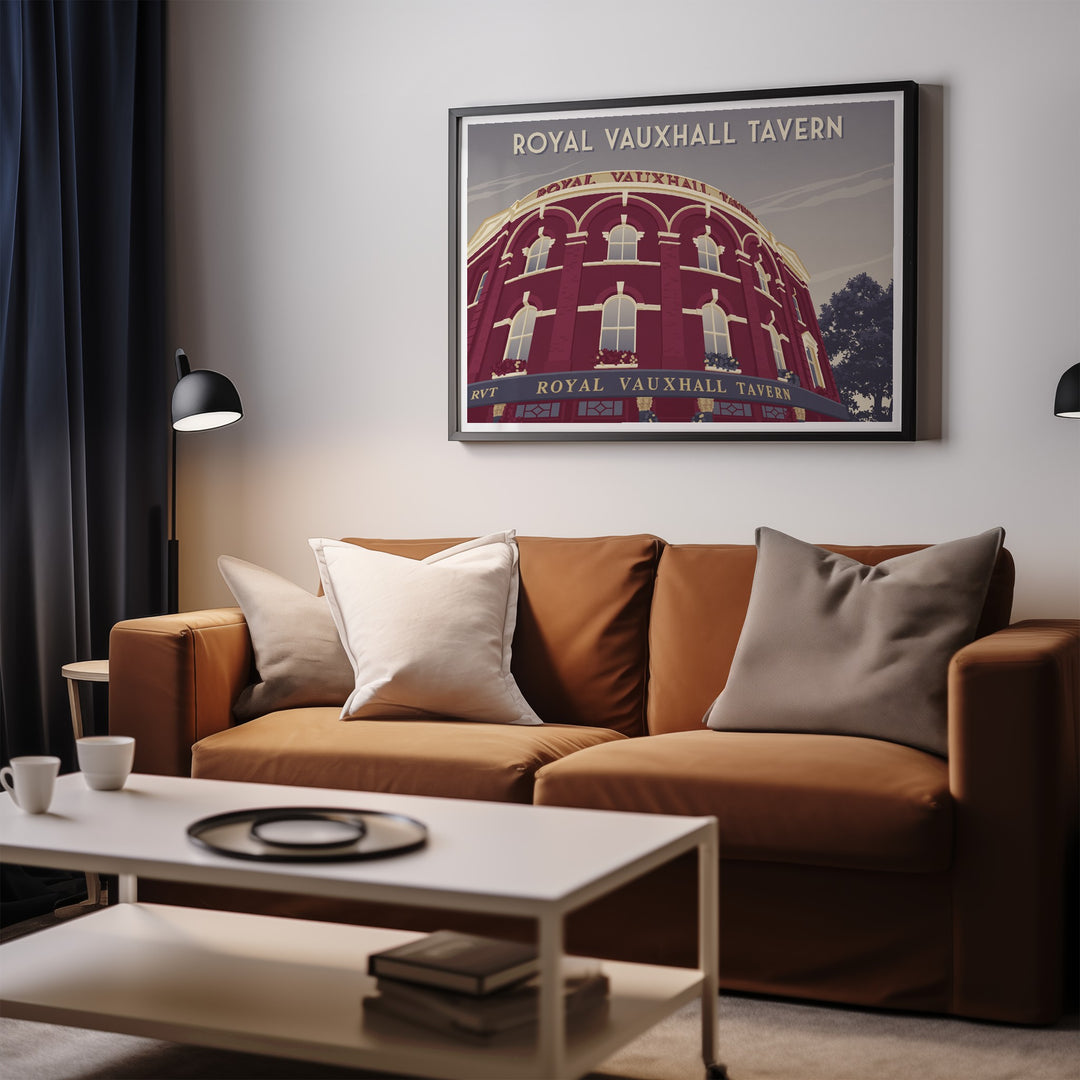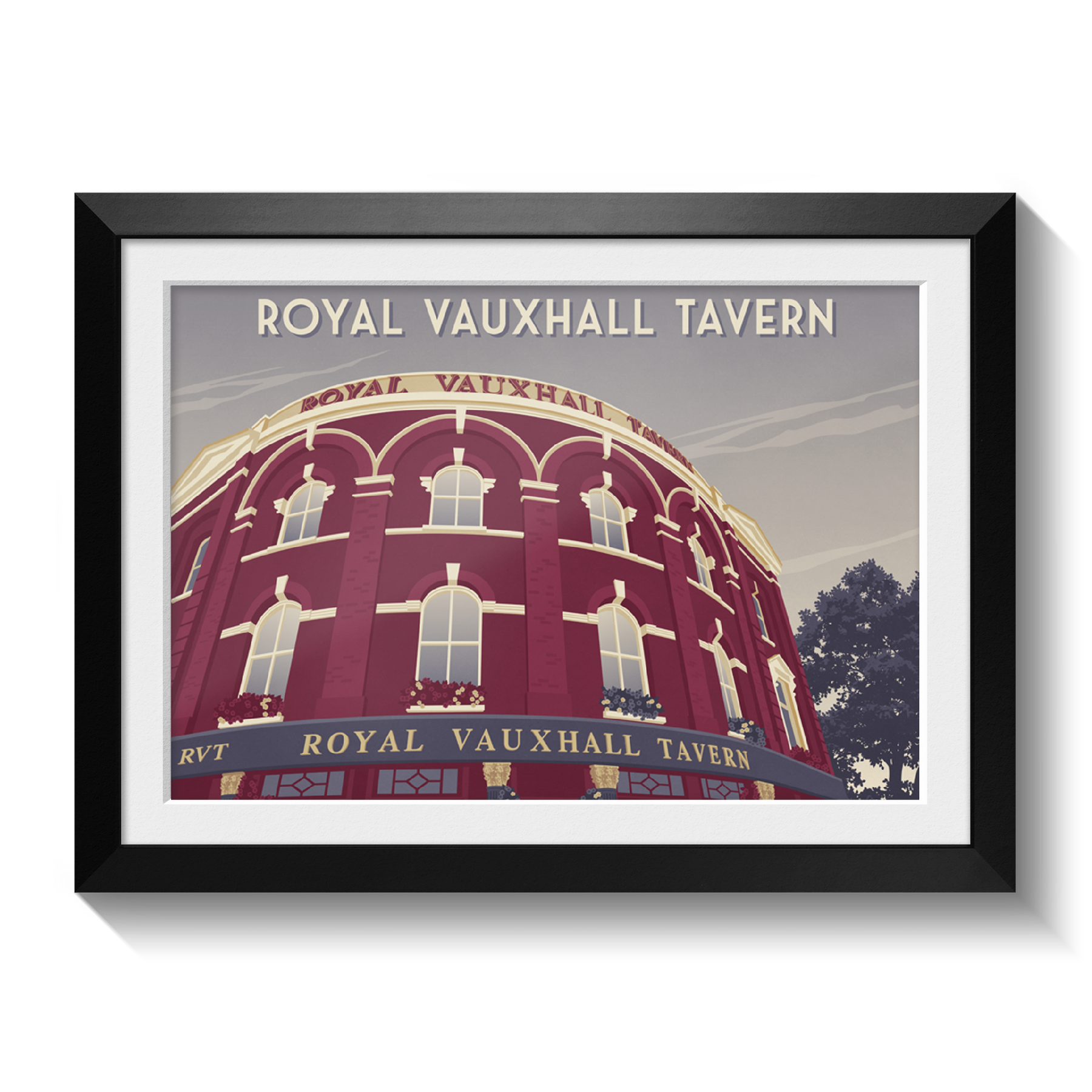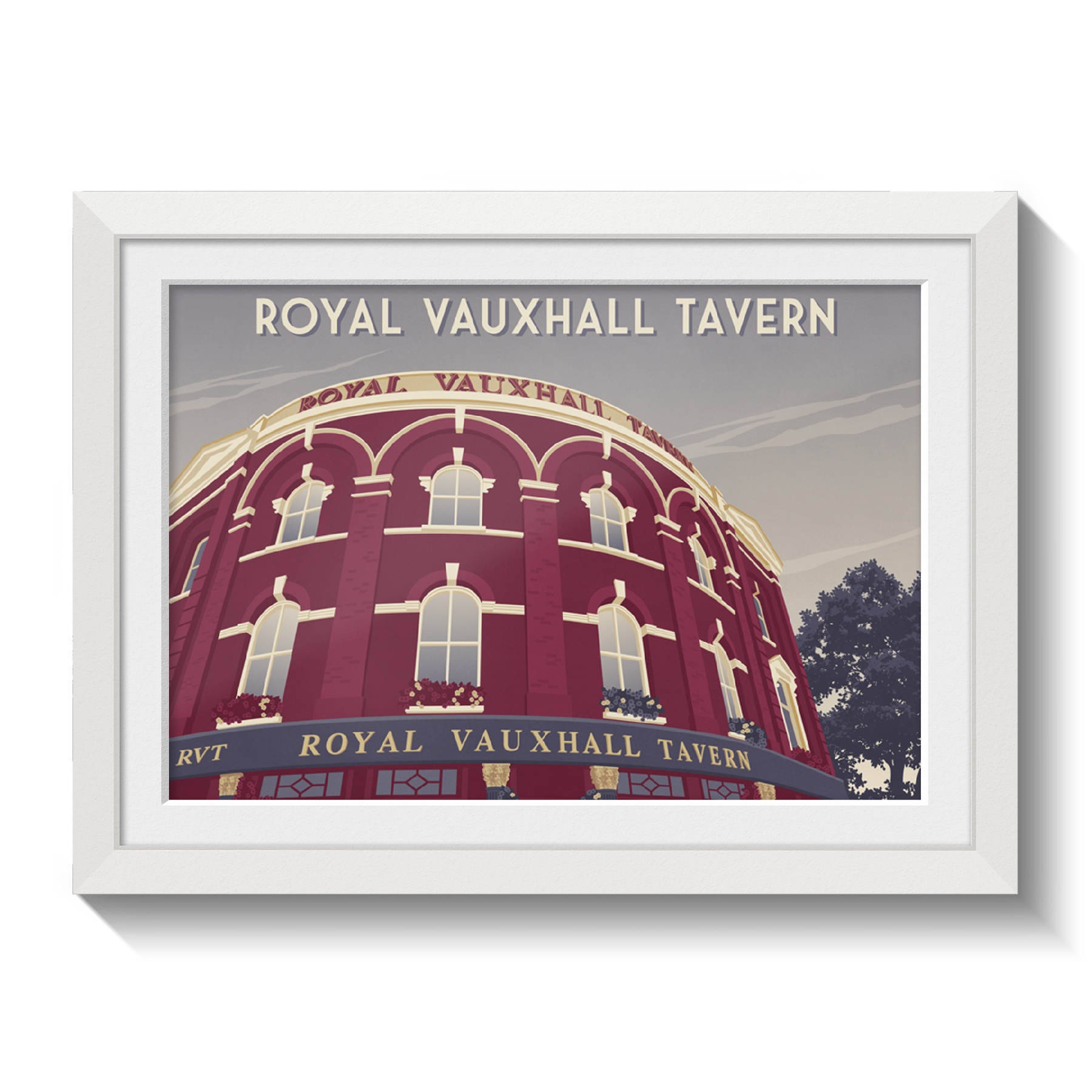 An original print featuring South London's oldest surviving gay entertainment venue, the Royal Vauxhall Tavern.