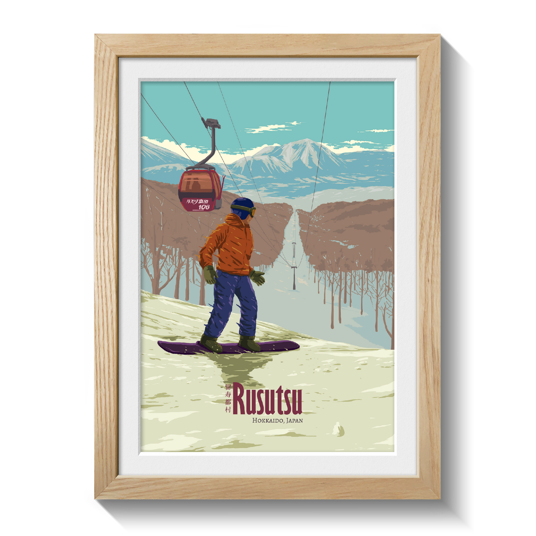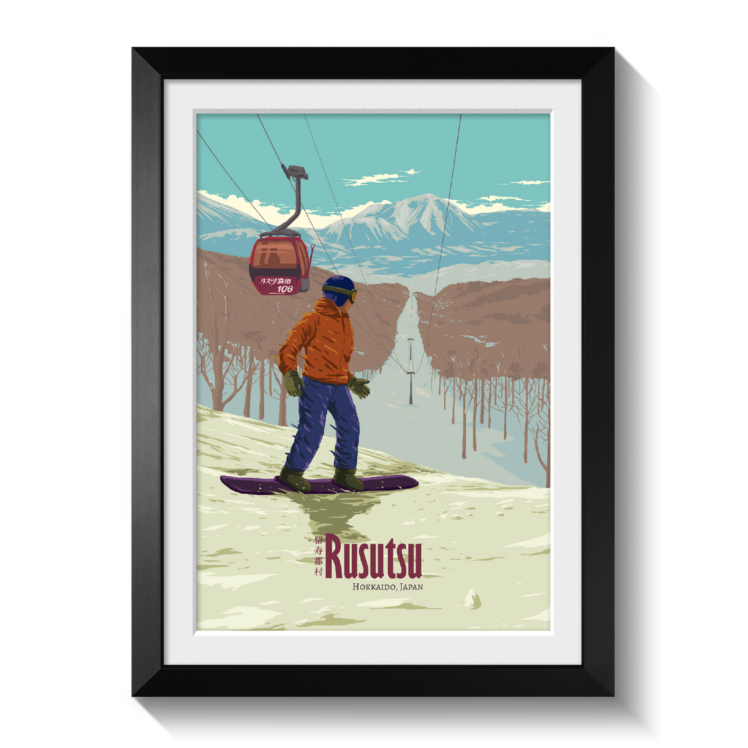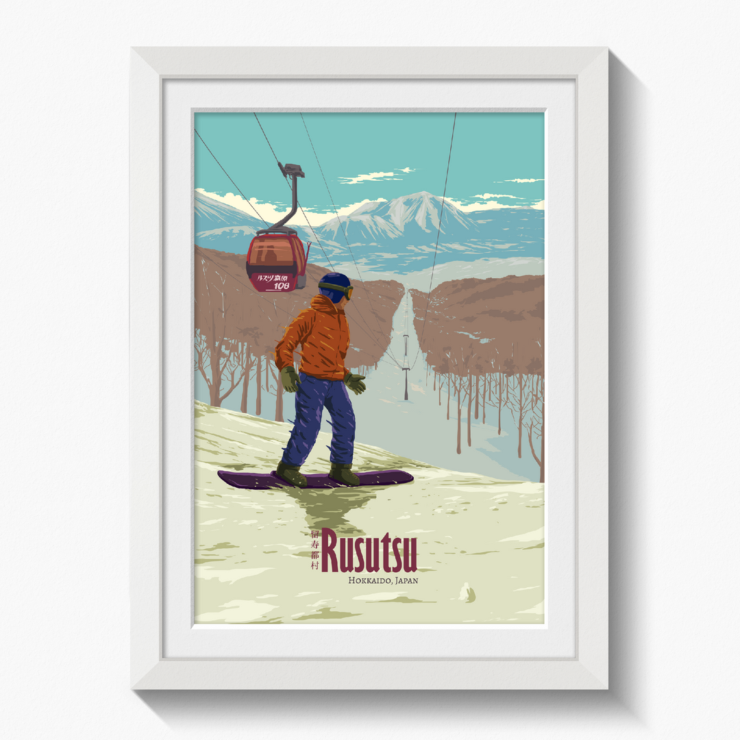 Rusutsu, Hokkaido, Japan snowboarding poster.