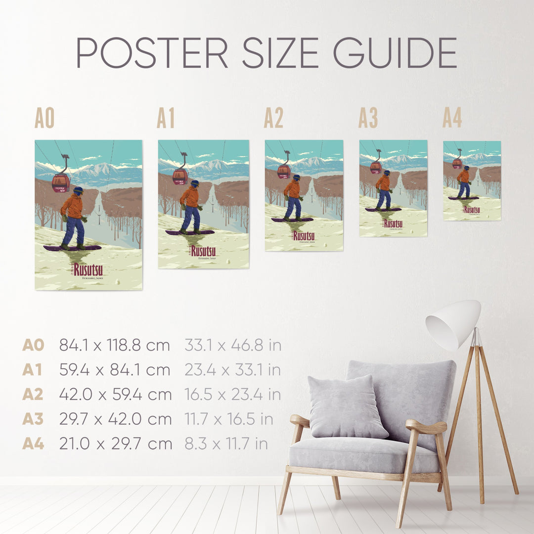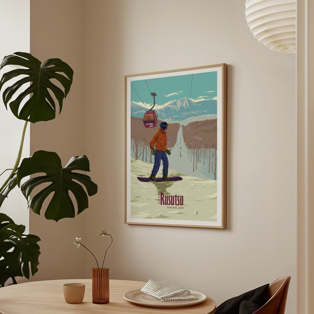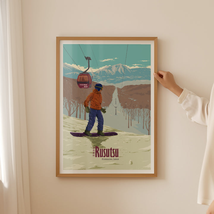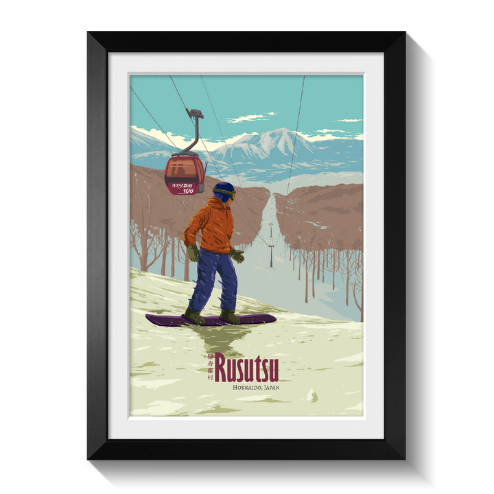 Rusutsu, Hokkaido, Japan snowboarding poster.