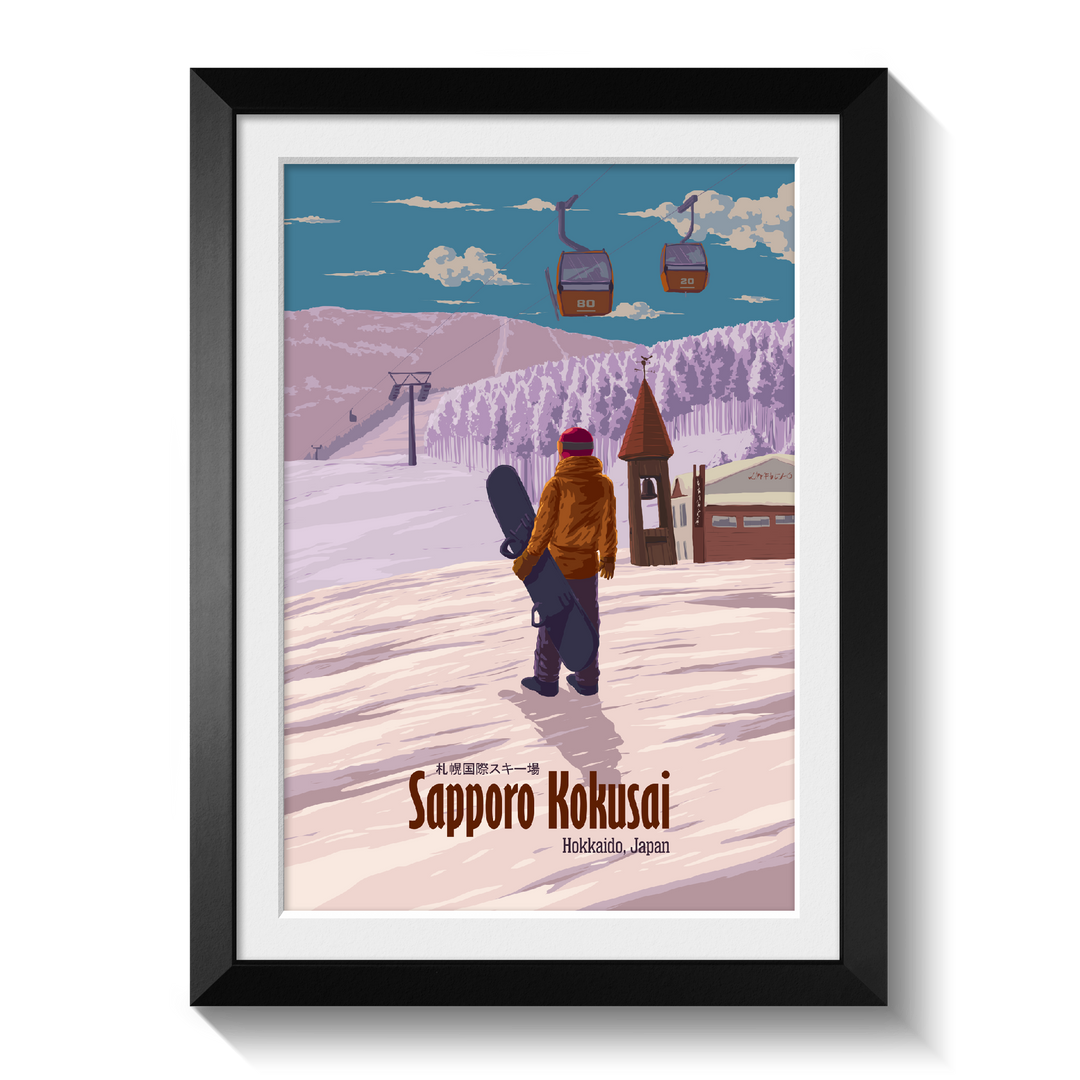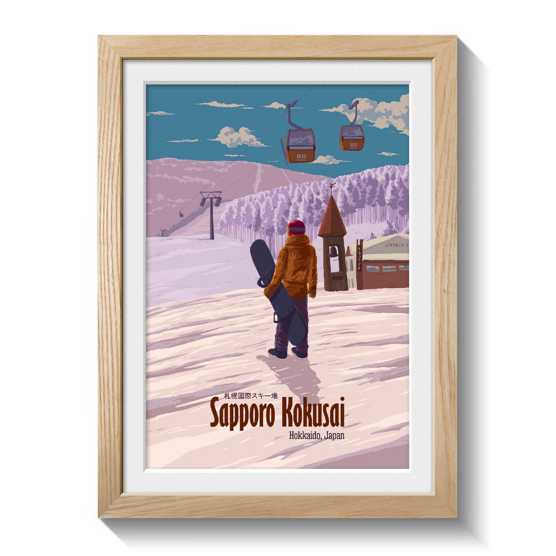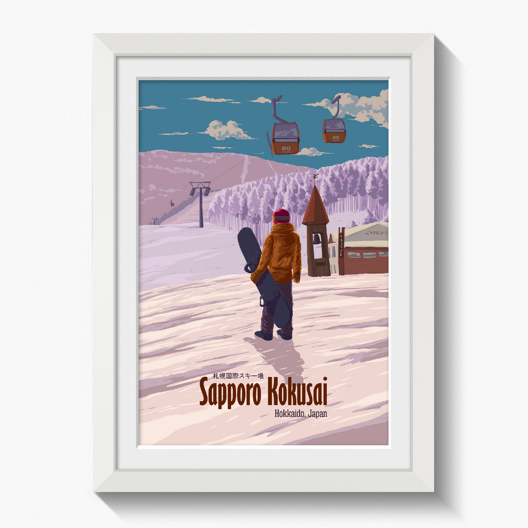 Sapporo Kokusai Japan Snowboarding Travel Poster