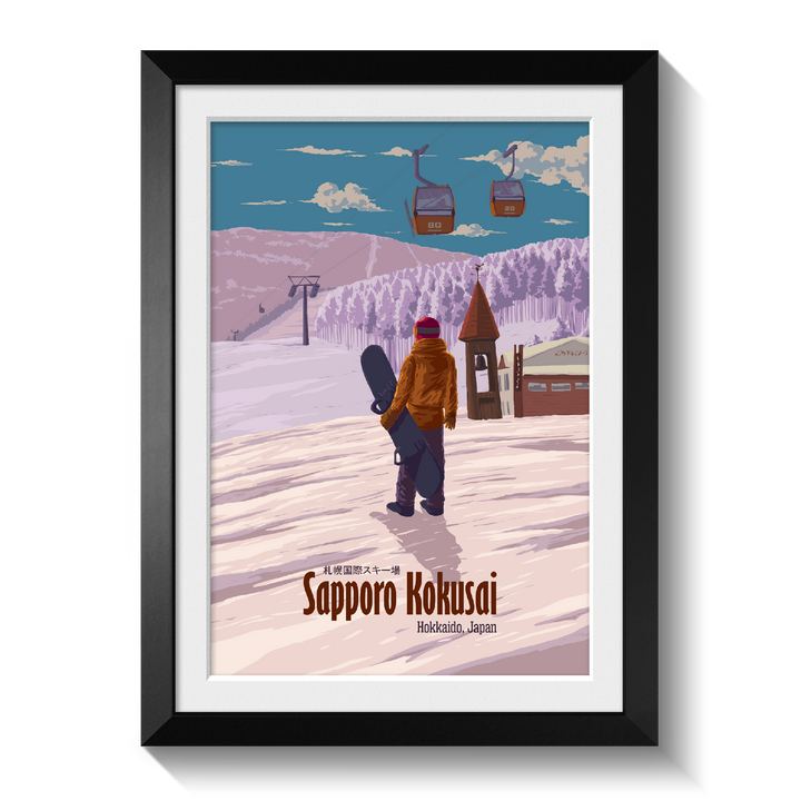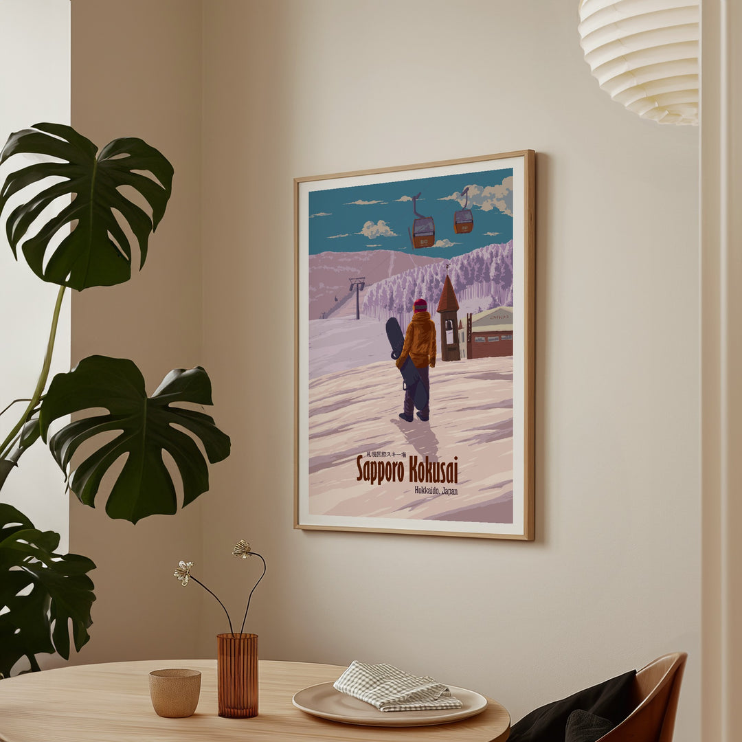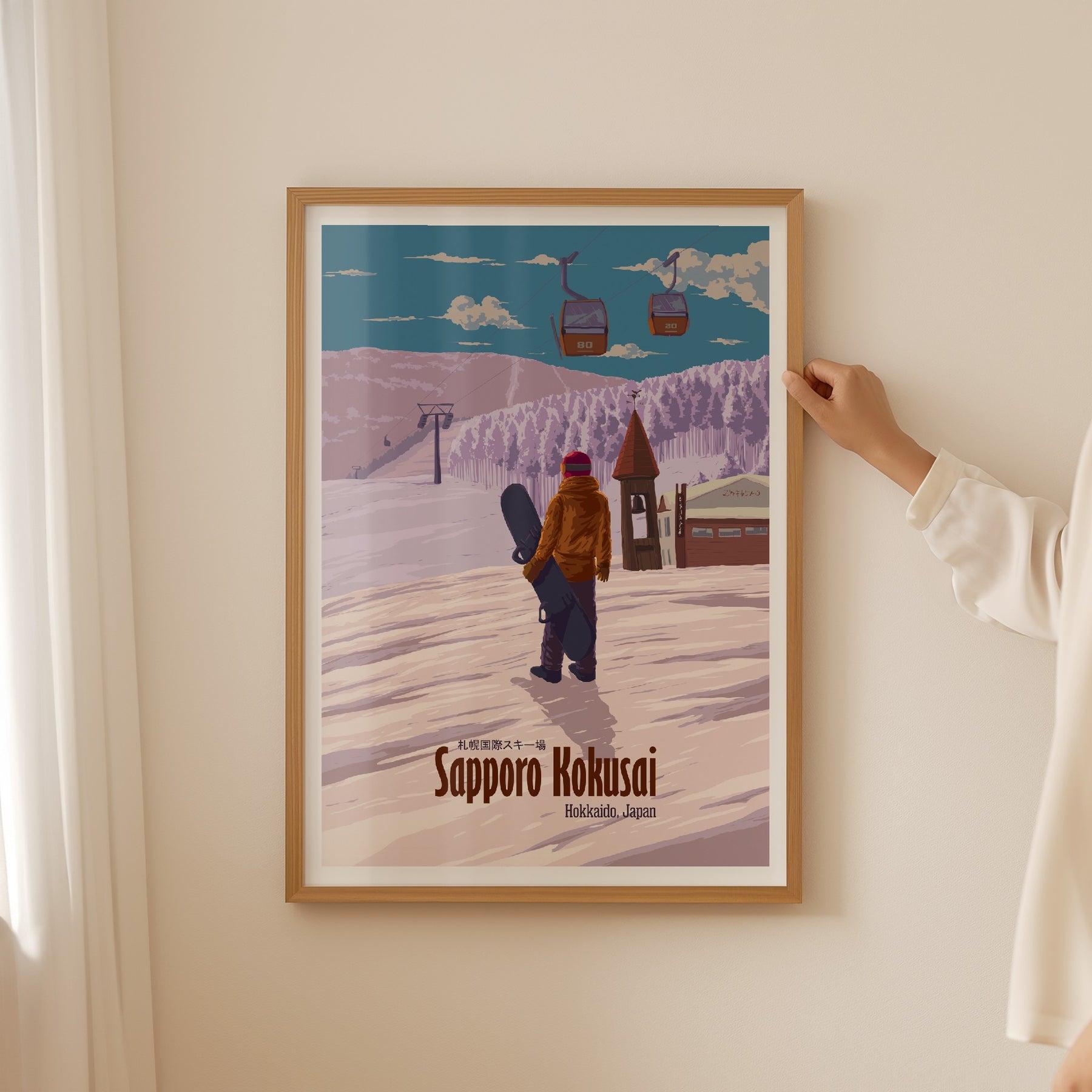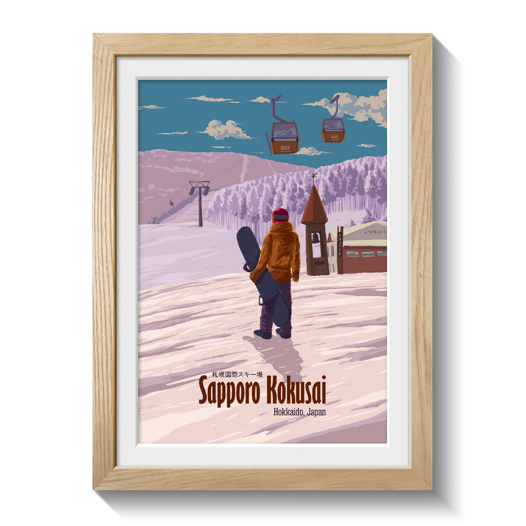 Sapporo Kokusai Japan Snowboarding Travel Poster