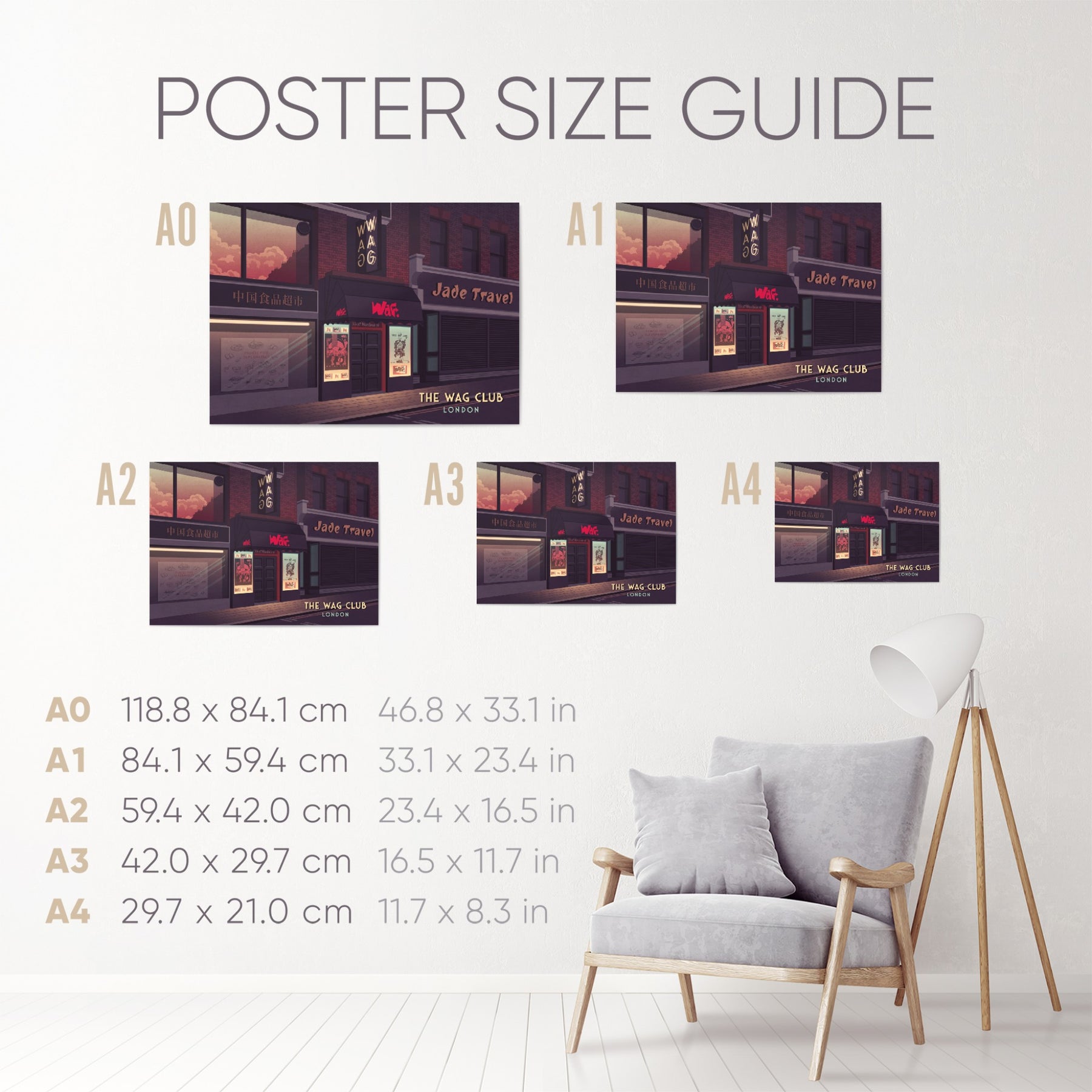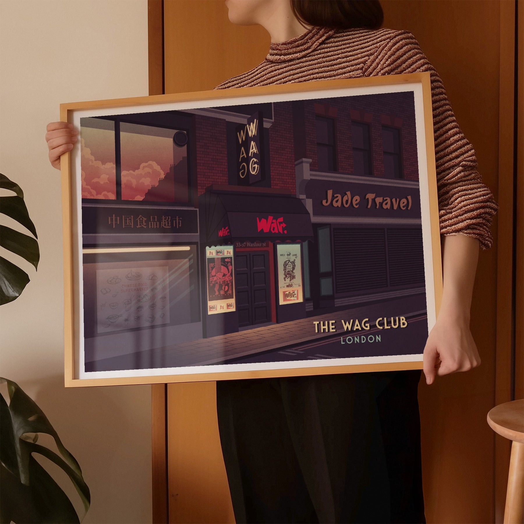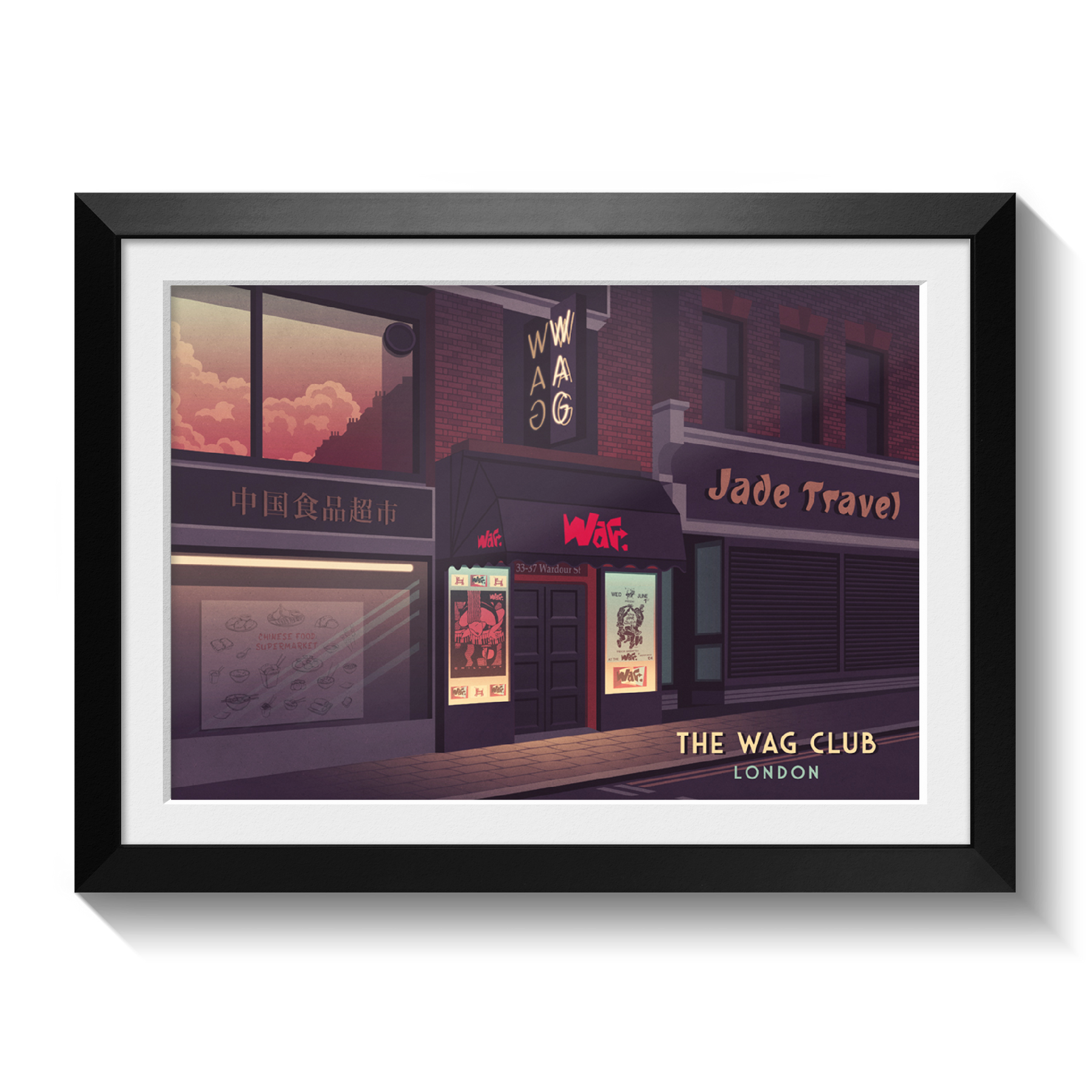An original travel print featuring the iconic 80s London Nightclub, the Wag Club.