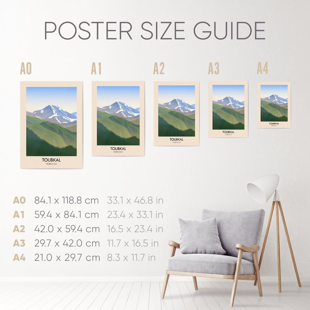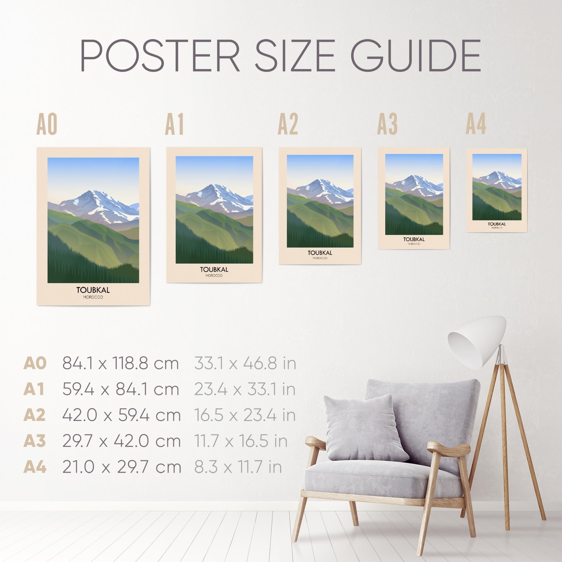 This original print is part of a series of new travel poster designs celebrating the world's iconic mountains and outdoor spaces.