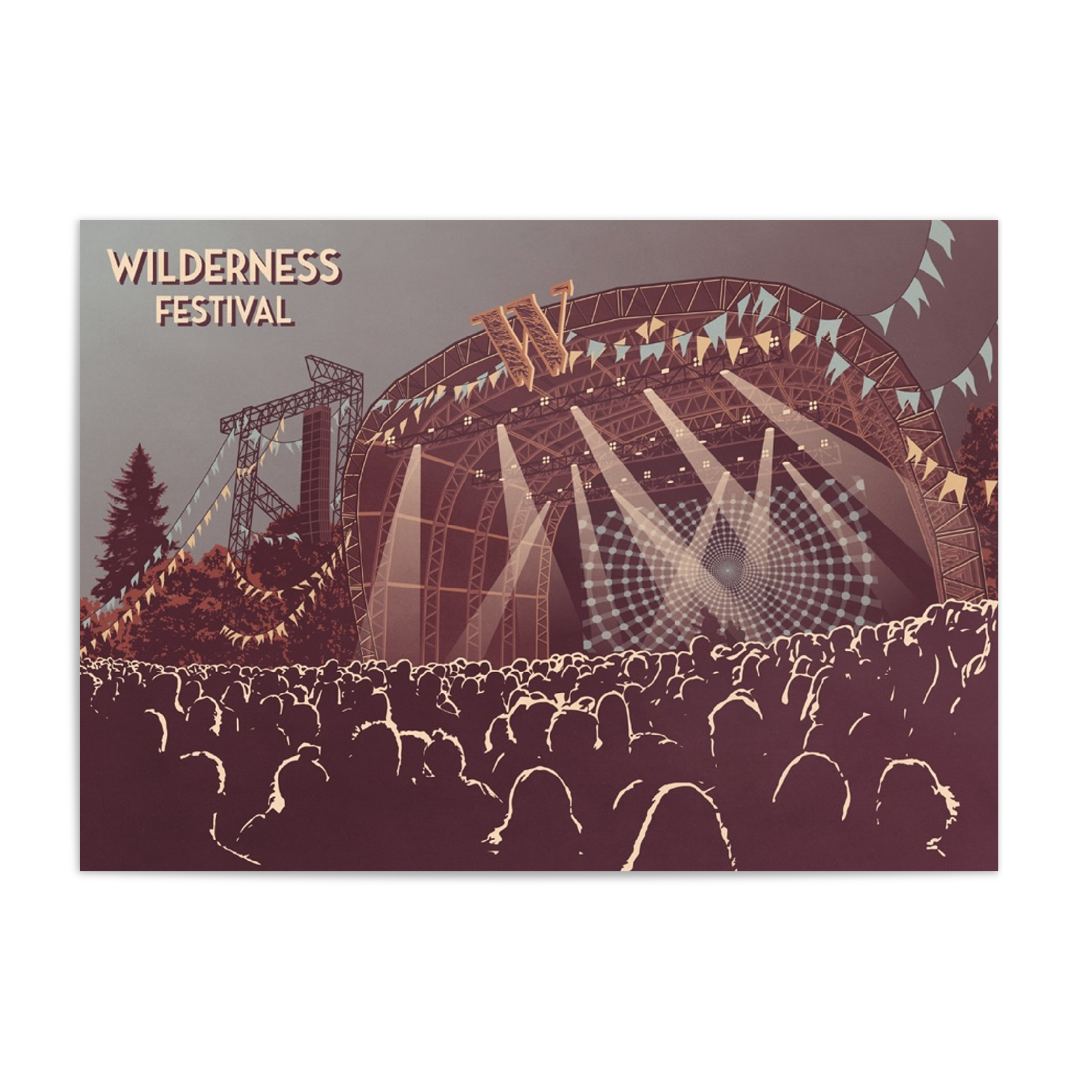 An original art print featuring the main stage at Wilderness Festival. Oxfordshire's rather civilised Wilderness Music Festival has been taking place in its Cornbury Park home since 2011 and has grown into a fully fledged multi day arts festival.
